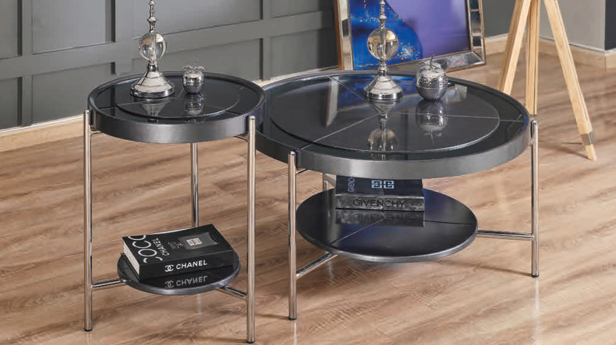 4137 Gümüş Ayaklı Siyah Aynalı Orta Sehpa