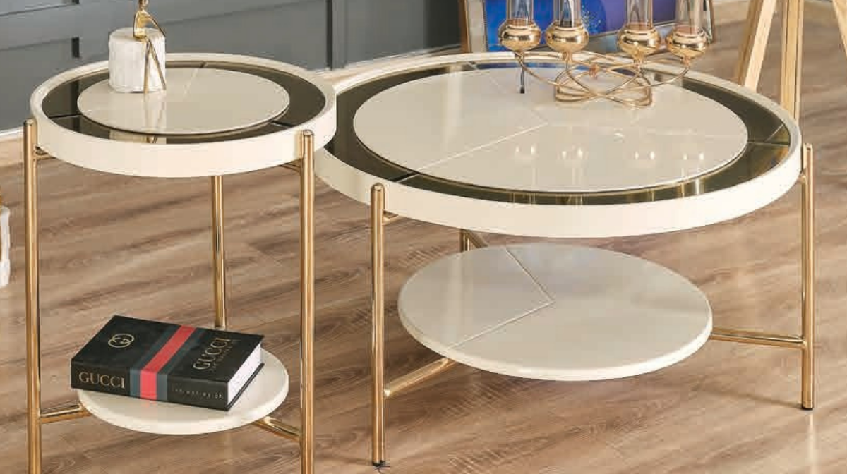 4138 Gold Ayaklı Krem Aynalı Orta Sehpa