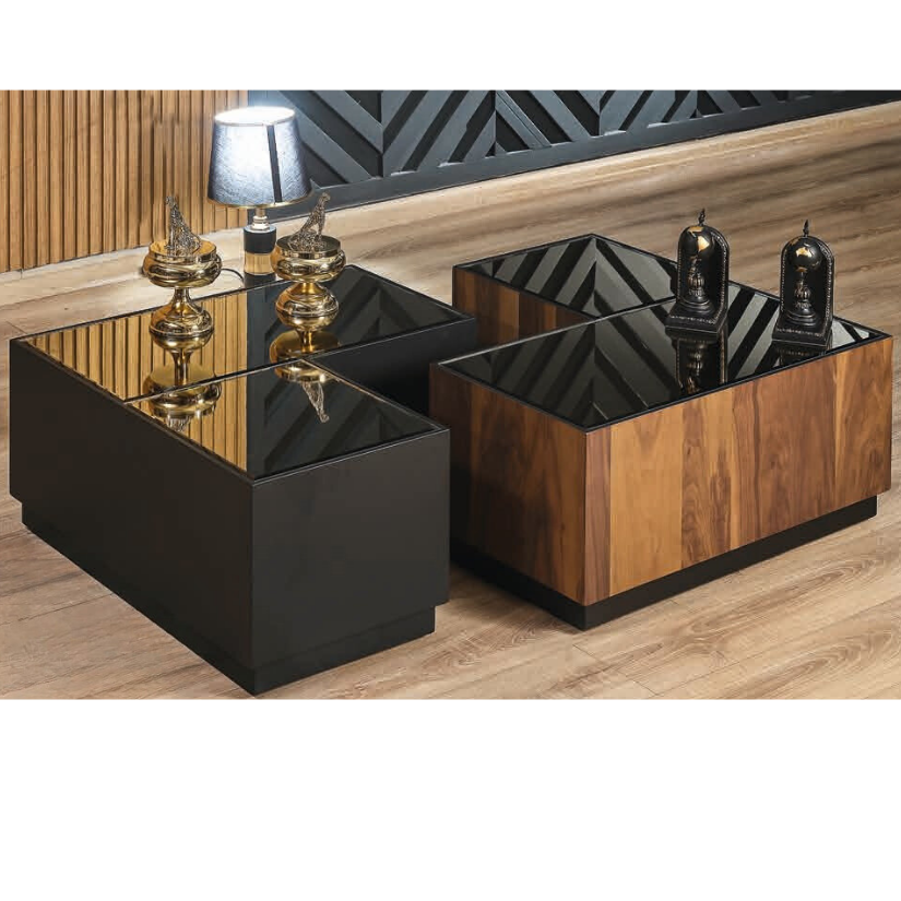 4157 Atlantik Çam Siyah Aynalı Orta Sehpa