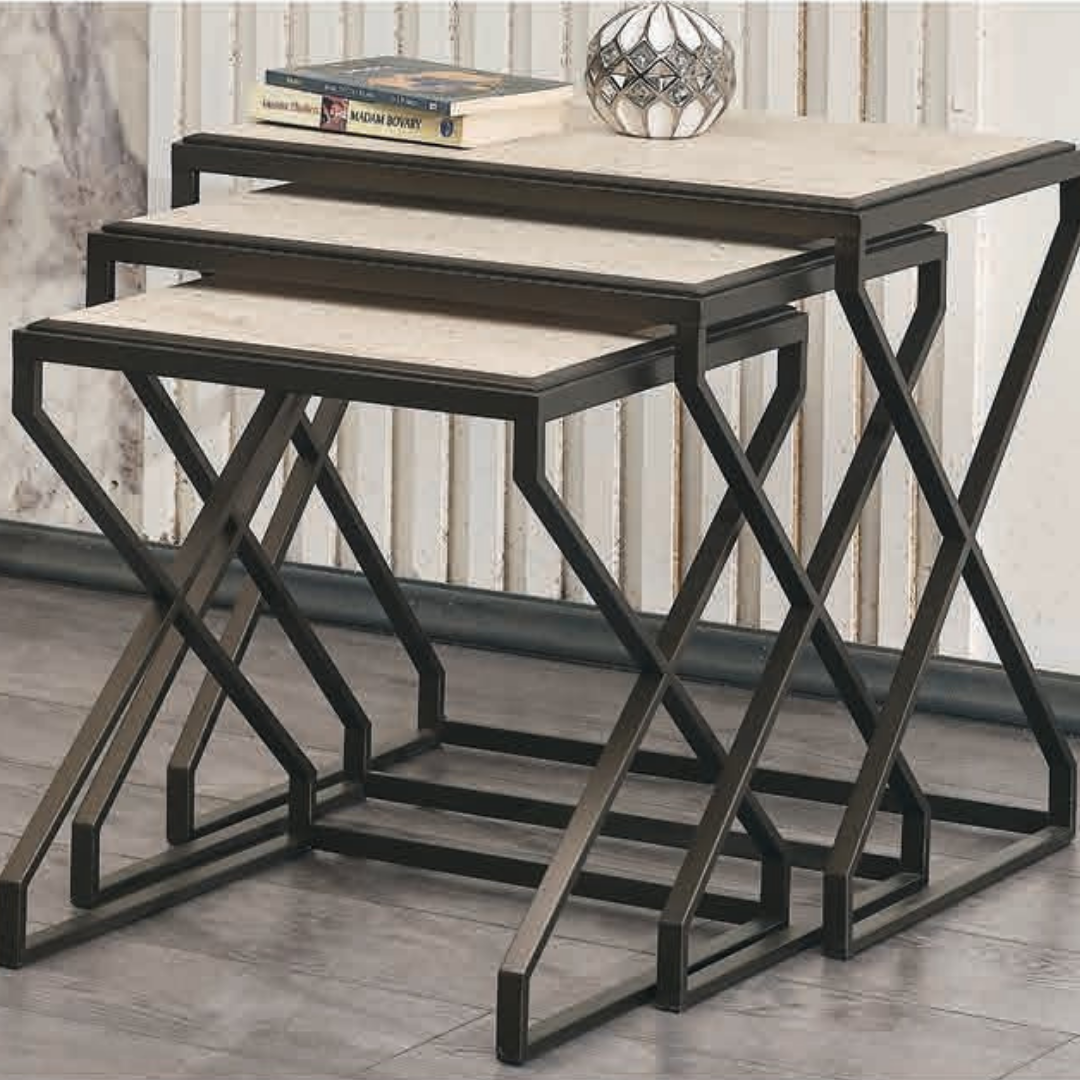 5117 Siyah Beyaz Mermer Zigon Sehpa 3'Lü, şıklığı ve işlevselliği bir arada sunarak, salonunuza modern bir hava katar. Çelik Kardeşler VIP’nin sunduğu elden taksit fırsatları ile bu özel Sehpaya kolayca sahip olabilir, evinizde kalite ve estetiği buluşturabilirsiniz.