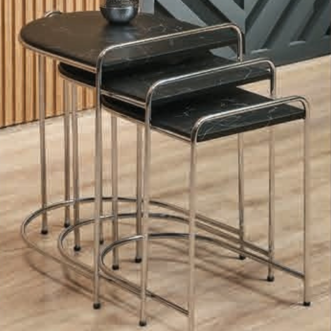 5088 Gümüş Siyah Zigon Sehpa 3'Lü
