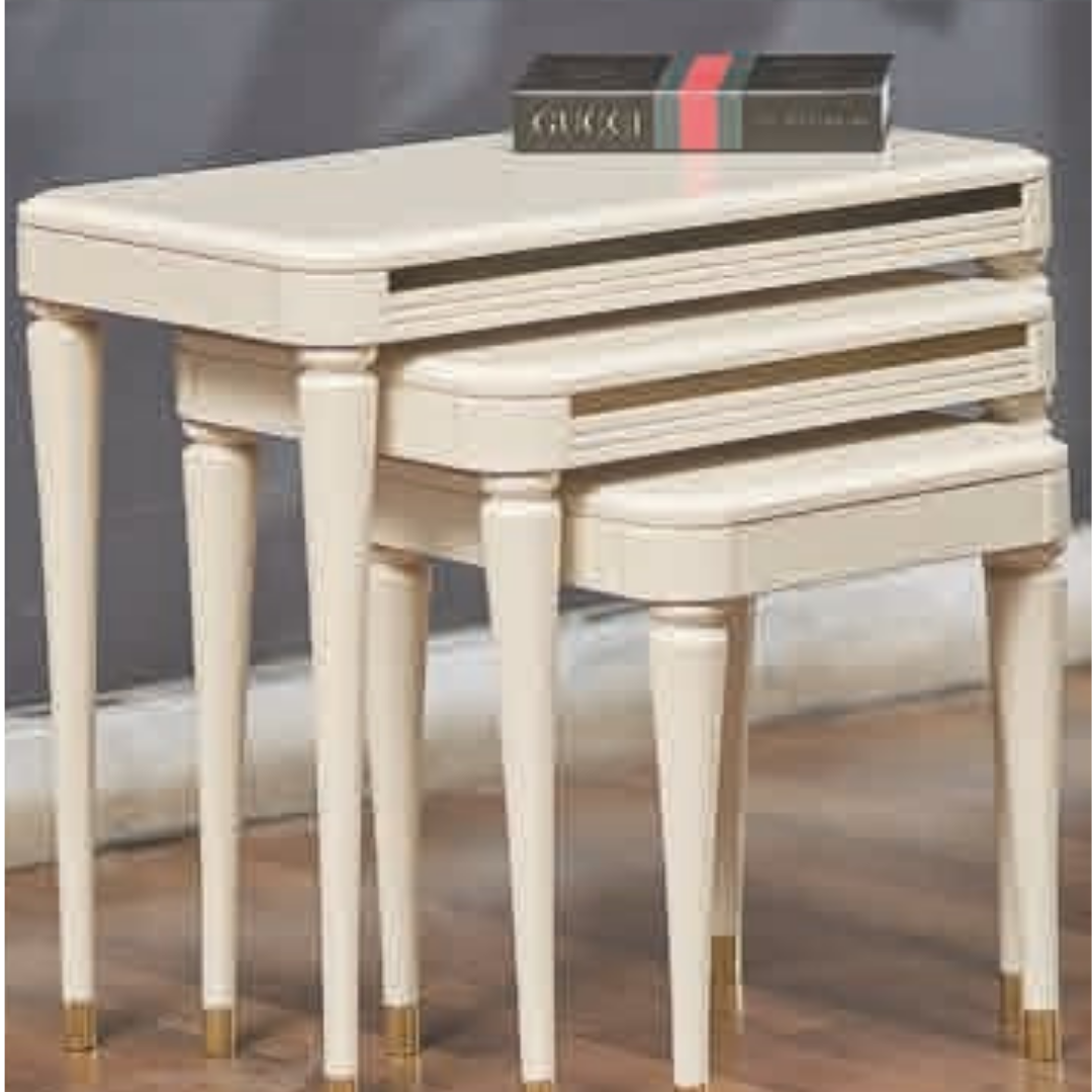 5081 Ahşap Krem Zigon Sehpa 3'Lü, şıklığı ve işlevselliği bir arada sunarak, salonunuza modern bir hava katar. Çelik Kardeşler VIP’nin sunduğu elden taksit fırsatları ile bu özel Sehpaya kolayca sahip olabilir, evinizde kalite ve estetiği buluşturabilirsiniz.