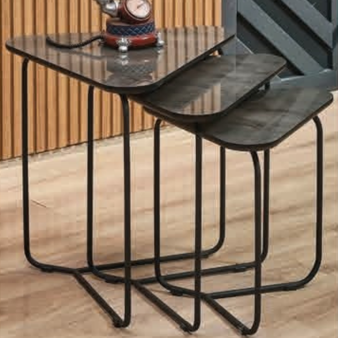 5115 Siyah Mermer Zigon Sehpa 3'Lü