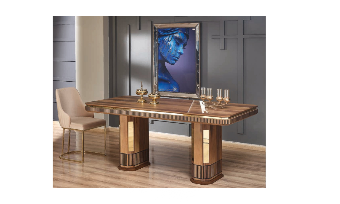 7026 Atlantik Çam Gold Yemek Masası, şıklığı ve işlevselliği bir arada sunarak, salonunuza modern bir hava katar. Çelik Kardeşler VIP’nin sunduğu elden taksit fırsatları ile bu özel masa takımına kolayca sahip olabilir, evinizde kalite ve estetiği buluşturabilirsiniz.