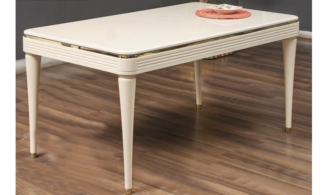 7043 Krem Yemek Masası, şıklığı ve işlevselliği bir arada sunarak, salonunuza modern bir hava katar. Çelik Kardeşler VIP’nin sunduğu elden taksit fırsatları ile bu özel yemek masasına kolayca sahip olabilir, evinizde kalite ve estetiği buluşturabilirsiniz.