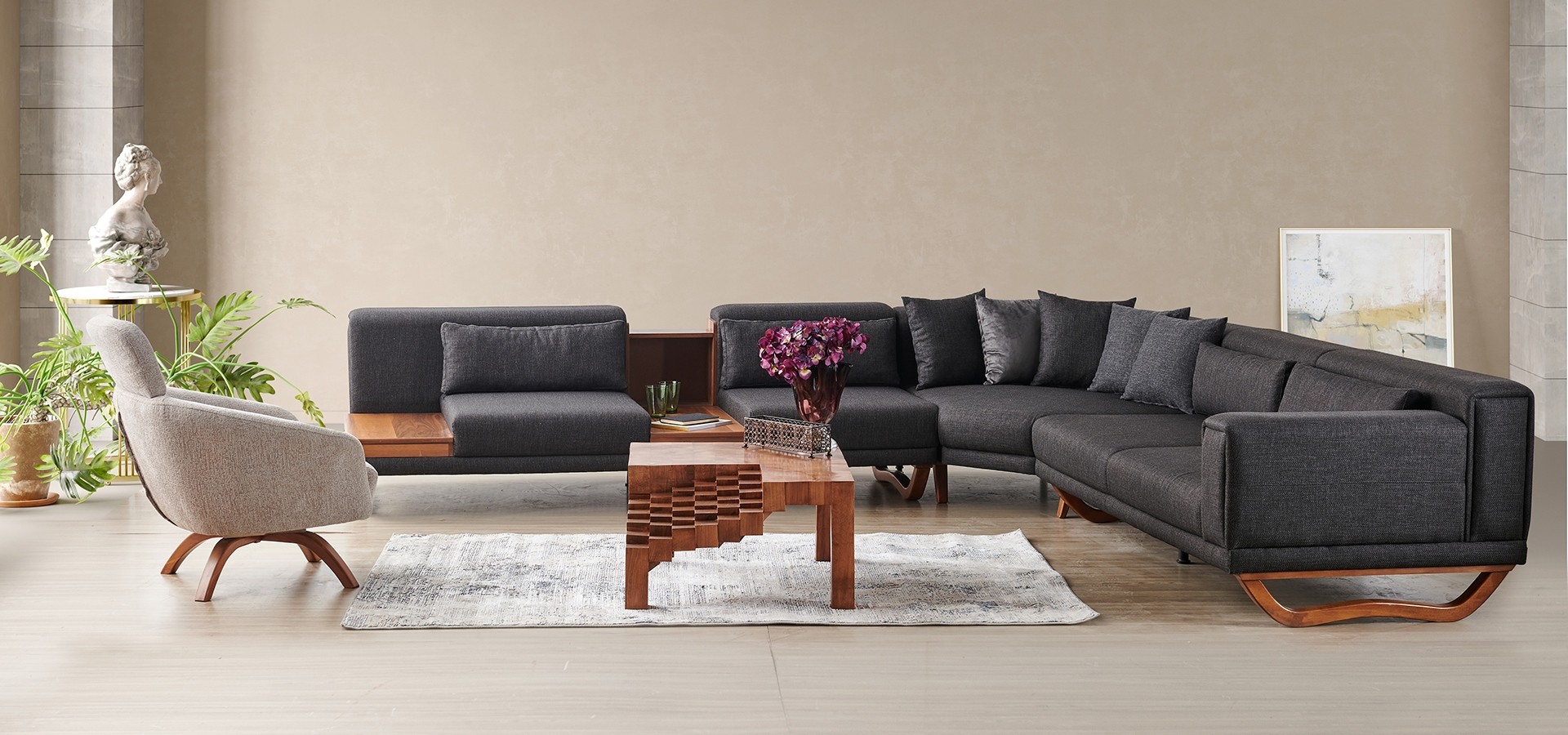 Argento TIENS köşe koltuk takımı, geniş oturma alanı ve zarif görünümüyle hem ailece kullanımda hem de davetlerde maksimum rahatlık sunar. Evinizin dekorasyonuna modern bir soluk kazandırmak için ideal bir seçimdir.