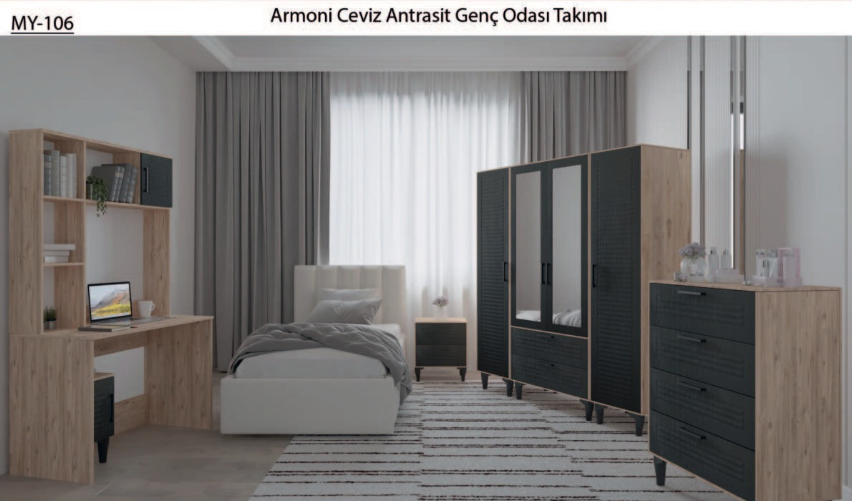 Armoni Ceviz Antrasit Genç Odası Takımı ile genç odanızı modernize edin ve hayalinizdeki genç odasına kavuşun!