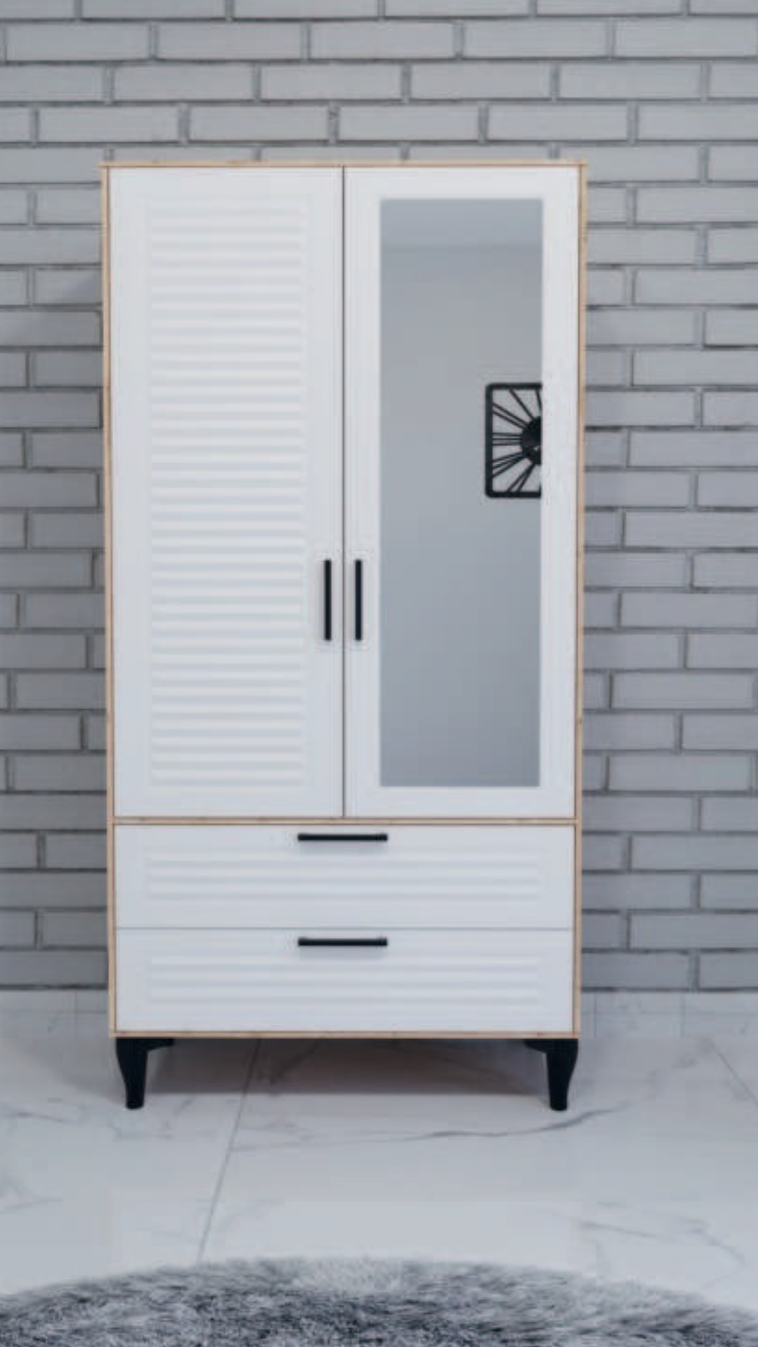 Modern ve geniş saklama alanıyla Armoni İki Kapılı Çift Aynalı Ceviz Beyaz Dolap, odanıza hem şıklık hem de düzen getiriyor! Gençlerin ve yetişkinlerin eşyalarını rahatça saklayabileceği bu dolap, işlevselliğiyle odanın en dikkat çekici parçası olacak. Geniş rafları ve asma bölmeleri sayesinde kıyafetler, aksesuarlar ve daha fazlası için ideal depolama alanı sunar.