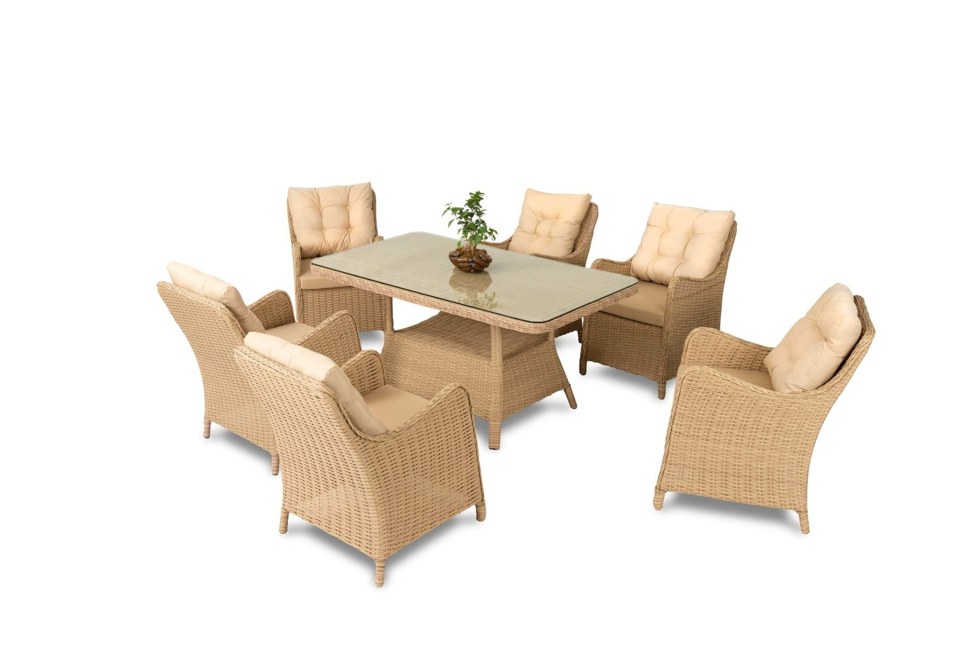 Bambu'da Garden Ayvalık 6 Kişilik Rattan Yemek Takımı, dış mekan şıklığını ve konforunu bir araya getirerek bahçenizde ya da terasınızda keyifli yemek sofraları kurmanız için tasarlandı. Alüminyum iskelet üzerine bej renkli sentetik rattan örgü kaplama ve rahat bej minderlerle tamamlanan bu takım, hem dayanıklılığı hem de estetik görünümüyle Çelik Kardeşler VIP farkını ortaya koyuyor. Geniş masa yüzeyi ve ergonomik tasarıma sahip koltuklarıyla kalabalık sofralarınızda konforu hissedin.