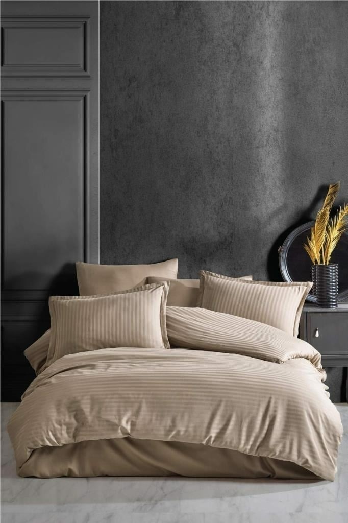 Clasy Çizgili Saten Nevresim Takımı Çift Kişilik Açık Kahve, doğallığı ve şıklığı bir arada arayanlar için eşsiz bir seçimdir. Şimdi Çelik Kardeşler VIP’te cazip fiyatlarla satışta!