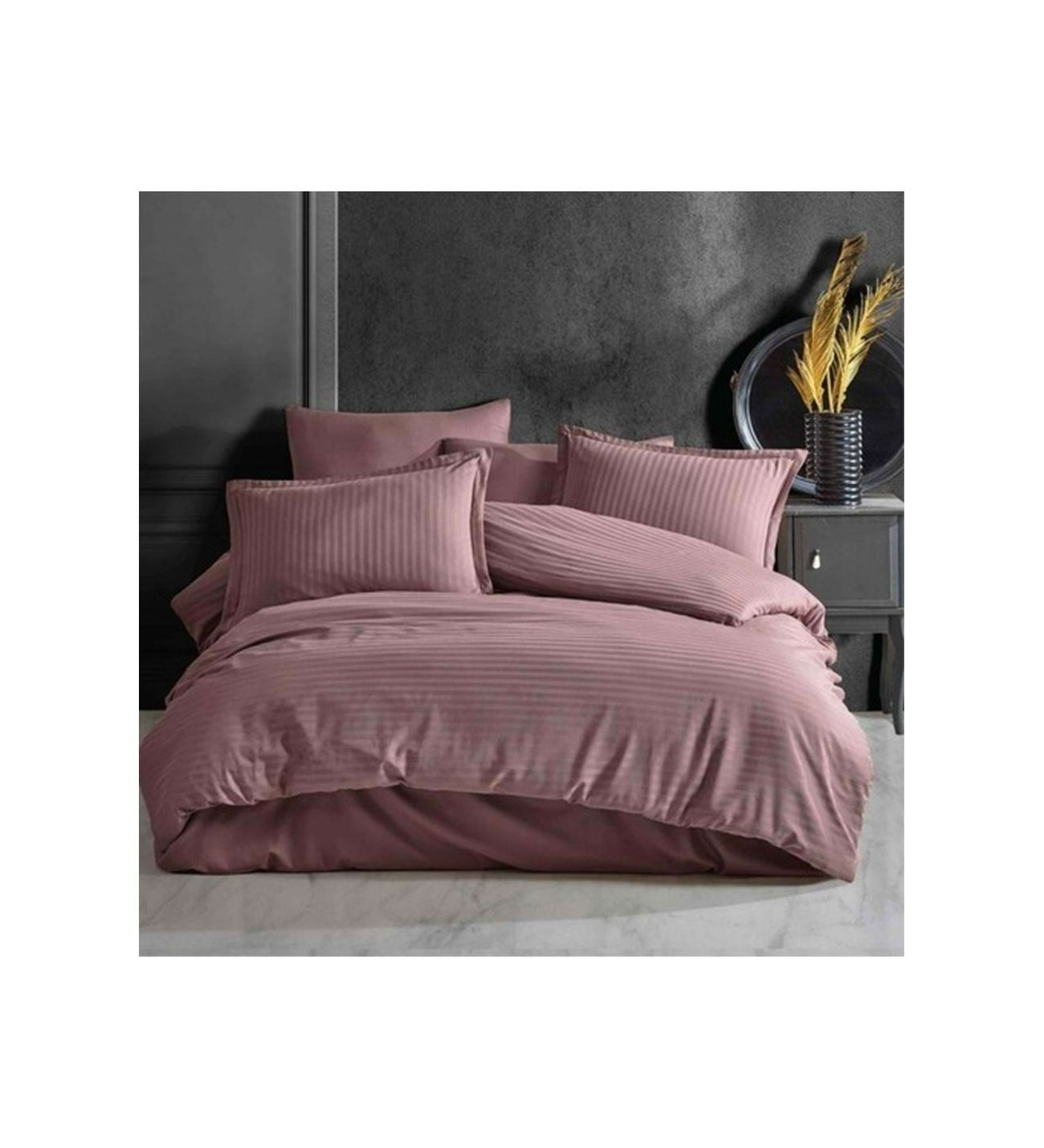Clasy %100 Pamuk Saten Çizgili Nevresim Takımı Çift Kişilik Düz Renk Rose, zarif çizgili dokusu ve romantik rose tonuyla yatak odalarınıza yumuşak bir şıklık getiriyor. %100 pamuk saten kumaşı sayesinde ipeksi bir dokunuş hissi sunar ve cildinizle dost bir uyku deneyimi yaşatır.