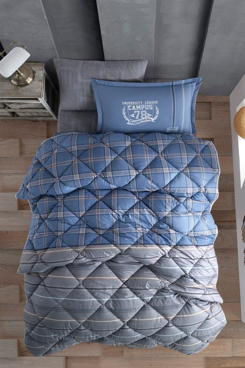 Clasy Ranforce %100 Pamuk Tek Kişilik Uyku Seti Campus V2 Mavi ile genç odalarında ferah ve sağlıklı uykular sizi bekliyor. Elden taksit uygun fiyat sarıçelikvip.