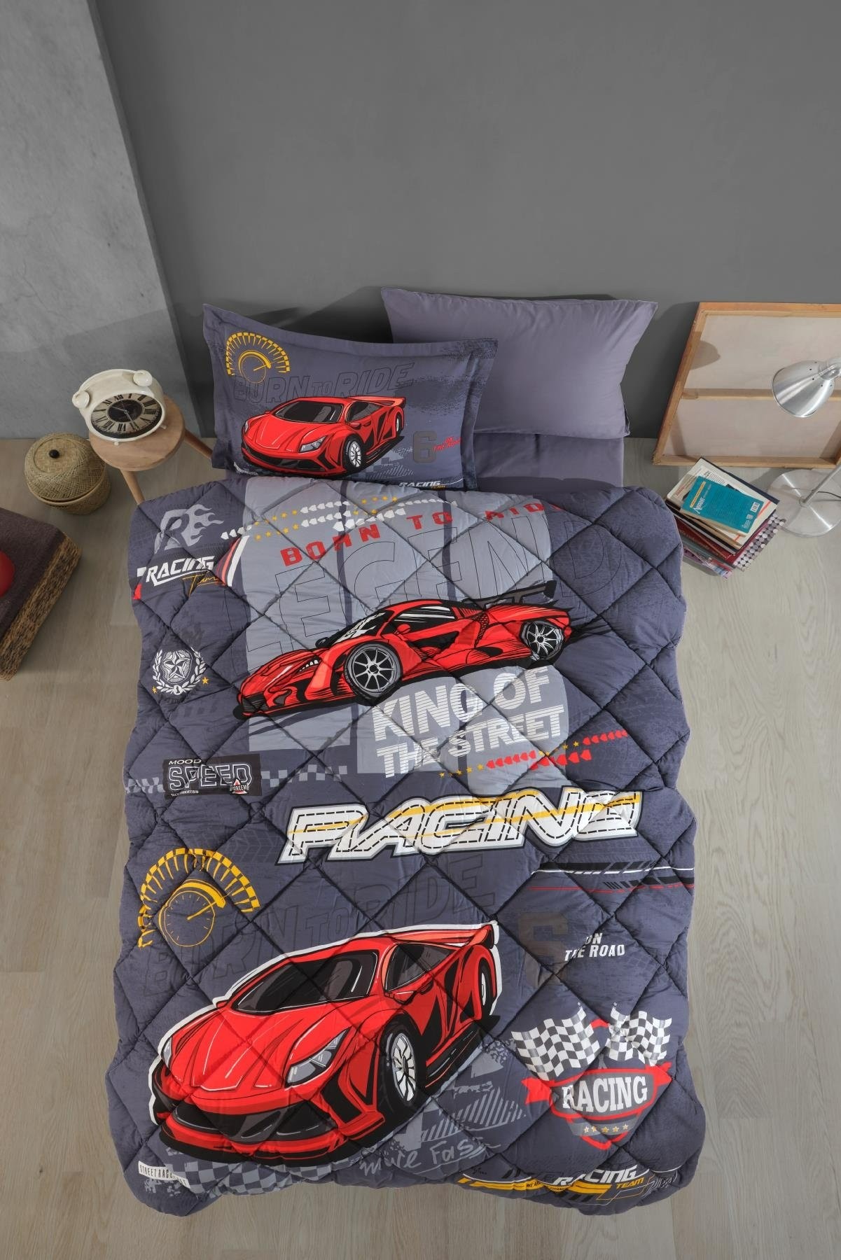 Clasy Ranforce Racing Team Uyku Seti, çocuklar için hem eğlenceli hem sağlıklı bir uyku çözümü sunar. Tek kişilik ölçüleriyle çocuk ve genç odaları için idealdir. Şimdi bu özel set ile odalara yarış heyecanı taşıyın.