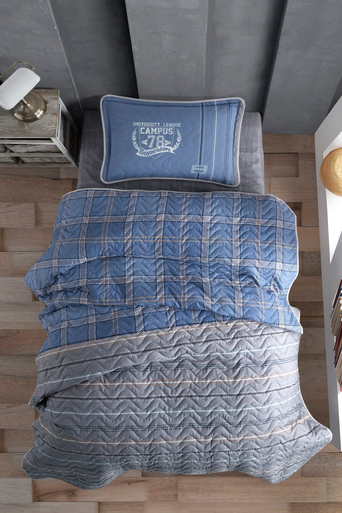 HesabımClasy Ranforce %100 Pamuk Tek Kişilik Yatak Örtüsü Seti Campus V2 Mavi, Çelik Kardeşler VIP ayrıcalığıyla tarz sahibi odalara estetik ve kullanım kolaylığı katıyor. %100 pamuk ipliğinden üretilen bu çok amaçlı set, yaz aylarında serin bir pike, geçiş mevsimlerinde ise şık bir yatak örtüsü olarak ideal bir tercih sunar. Mavi tonuyla ferahlığı odanıza taşıyın.