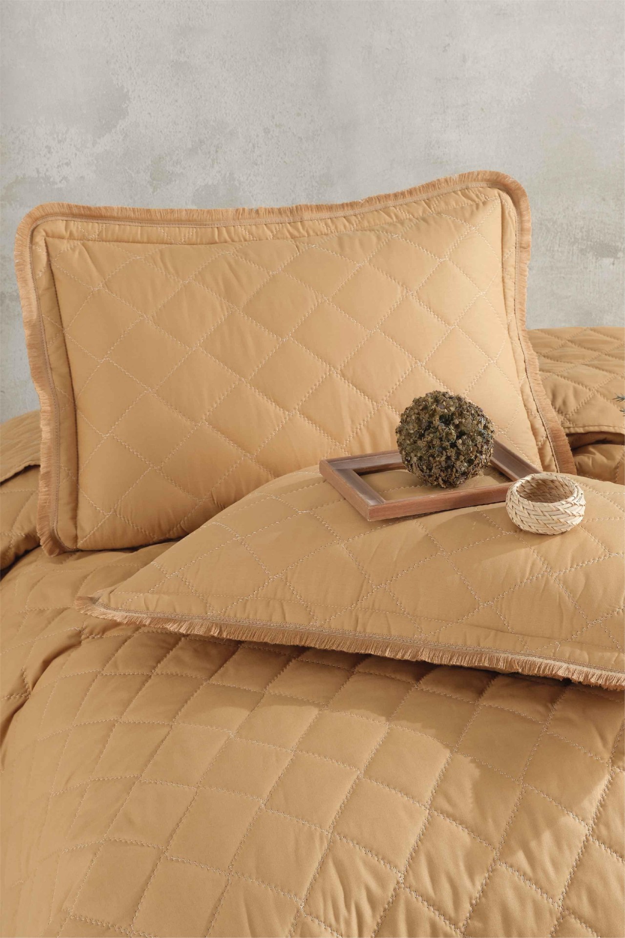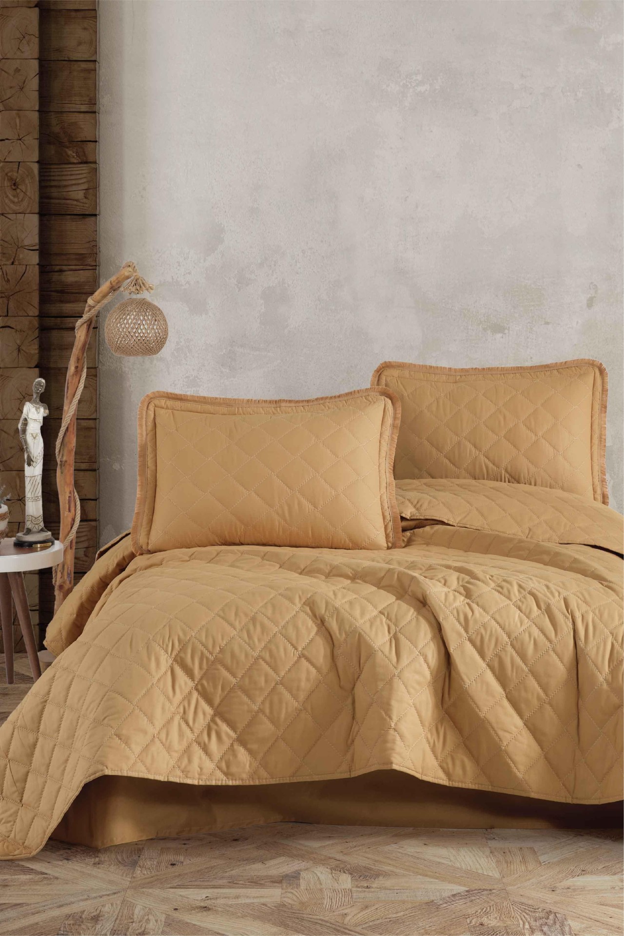 HesabımClasy Tafana V4 Zencefil, şık ve sade tasarımıyla hem yaz aylarında pike olarak hem de sonbahar/ilkbaharda yatak örtüsü olarak kullanabileceğiniz çok amaçlı bir üründür. %100 pamuk ipliğinden üretilmiştir, nefes alabilen yapısı sayesinde rahat bir uyku ortamı sağlar.