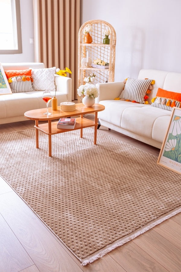 Cotton Halı Pita PT03 Beige, modern dekorasyon anlayışına hitap eden peluş dokusuyla göz doldurur. 10 mm hav yüksekliği sayesinde adımlarınıza yumuşak bir lüks sunarken, minimal ve bohem desenleriyle İskandinav stilini evinize taşır. Hem büyük hem küçük yaşam alanlarına uygun ebat seçenekleriyle, fonksiyonel ve estetik bir çözüm sunar. Çelik Kardeşler VIP kalitesiyle sunulan bu halı, zarafeti ve konforu bir araya getirir.