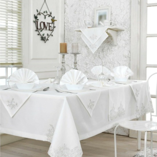 Dantelli ve sade desen tasarımıyla her türlü masa düzenine uyum sağlayan Elart Venedik 12 Kişilik Yemek Seti, evinizde estetik ve pratikliği bir araya getiriyor. Dayanıklı polyester kumaşı sayesinde lekelere karşı dirençli olup, hijyenik kullanım imkânı sunar. Şıklığıyla sofralarınıza değer katacak bu özel set, Çelik Kardeşler VIP fırsatlarıyla sizi bekliyor.
