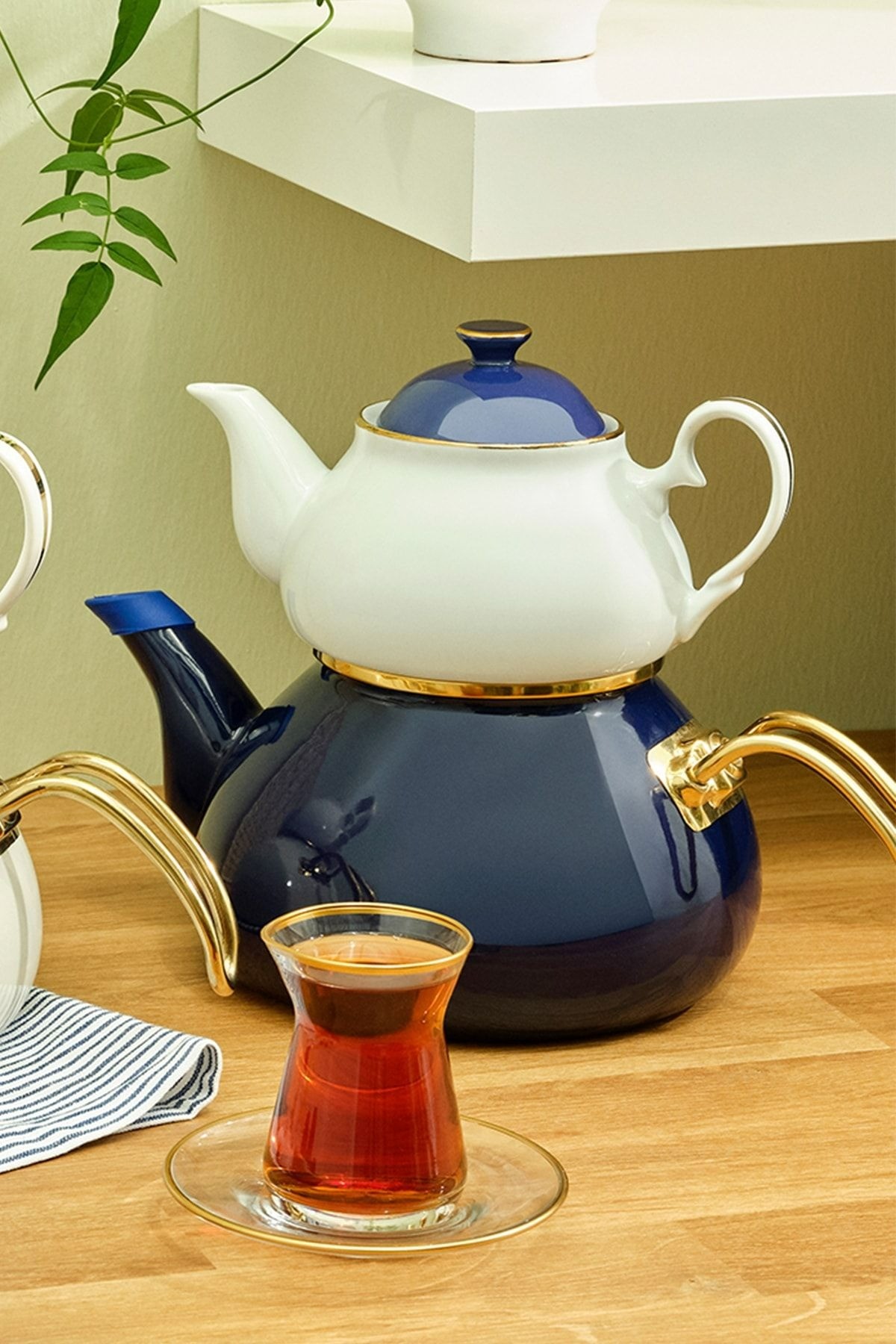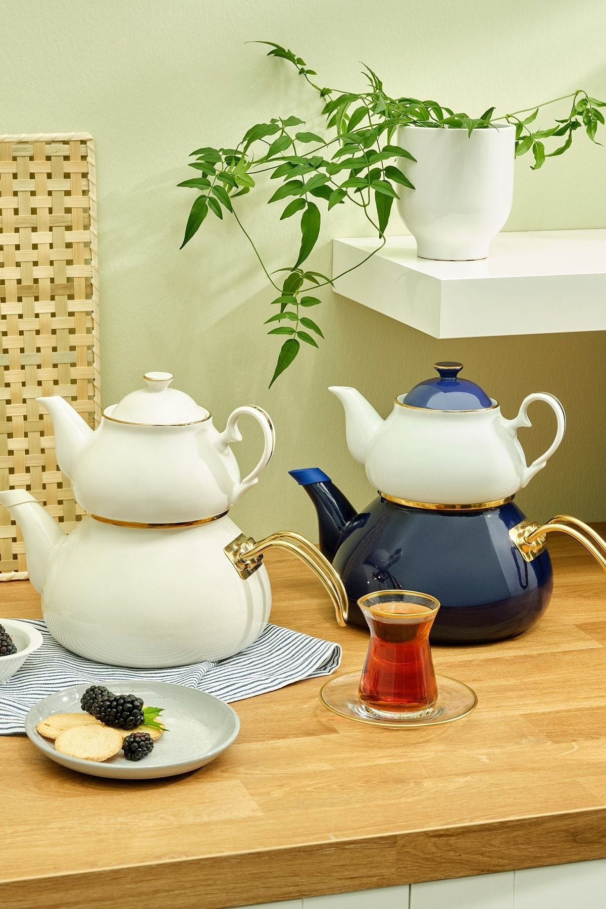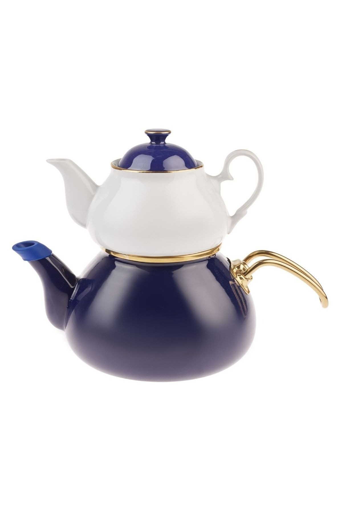 Emsan Alice Gold Emaye Porselen Demlikli Çaydanlık Takımı Kobalt