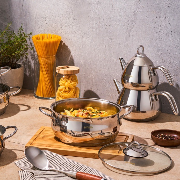 Emsan Cordoba Maxi Çaydanlık Takımı, zarif tasarımı ve dayanıklı yapısıyla çay keyfinizi katlıyor. Paslanmaz çelikten üretilen bu çaydanlık takımı, Çelik Kardeşler VIP avantajları ve elden taksit imkanıyla sizleri bekliyor