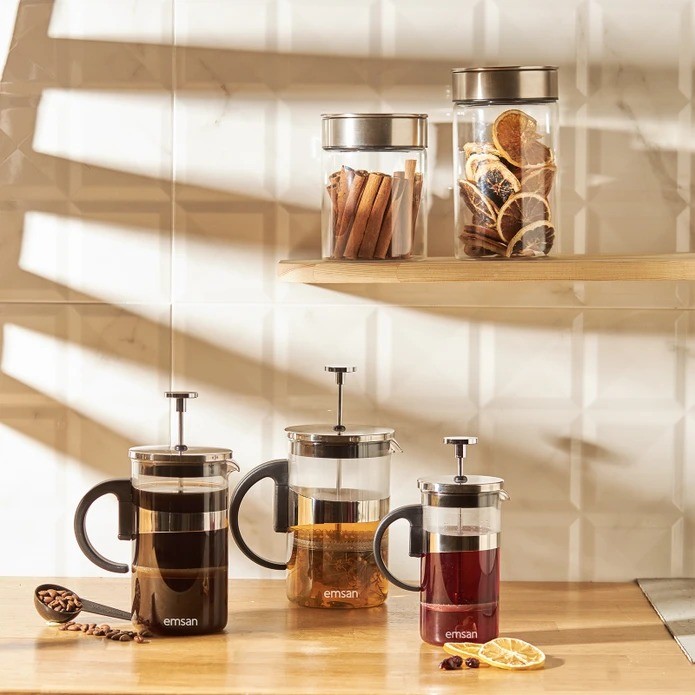 Emsan Royal French Press 350 ml, kahve keyfinizi en üst düzeye çıkarır. Şık ve pratik tasarımı ile her fincanda mükemmel kahve deneyimi sunar. Çelik Kardeşler VIP ayrıcalıkları ve elden taksit imkanlarıyla bu harika French Press'e hemen sahip olun