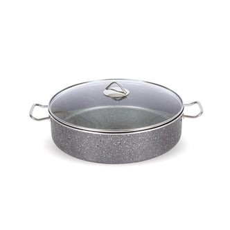 FMS 40 Cm Cam Kapaklı Granit Pilav Karnıyarık Tenceresi Gri, mutfaklarınıza şıklık katarken yemeklerinizi mükemmel bir şekilde pişirmenize olanak tanır. Granit iç yüzeyi ile yapışmaz özellik gösterir, leke tutmaz ve uzun ömürlü kullanım sunar. Üstün ısı dağılımı sayesinde yemekleriniz daha lezzetli ve eşit pişer. Bu tencere, tüm mutfak ihtiyaçlarınızı karşılayacak kaliteye sahip, modern mutfakların vazgeçilmezi olacak.