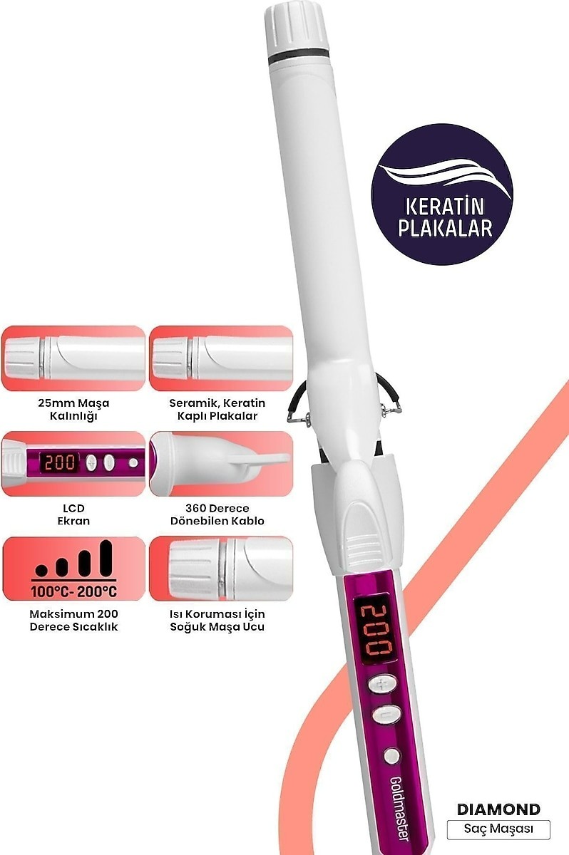 GoldMaster Diamond Dijital Saç Şekillendirici Maşa, profesyonel sonuçları evinize taşıyor! Seramik ve keratin kaplı plakaları sayesinde saçlarınızı hem şekillendirirken hem de korur. Dijital ekranı, sıcaklık kontrol butonları ve otomatik kapanma gibi akıllı özellikleri ile günlük kullanımda maksimum konfor ve güvenlik sağlar. Şimdi Çelik Kardeşler VIP güvencesiyle elden taksit ve uygun fiyat avantajıyla sizlerle!