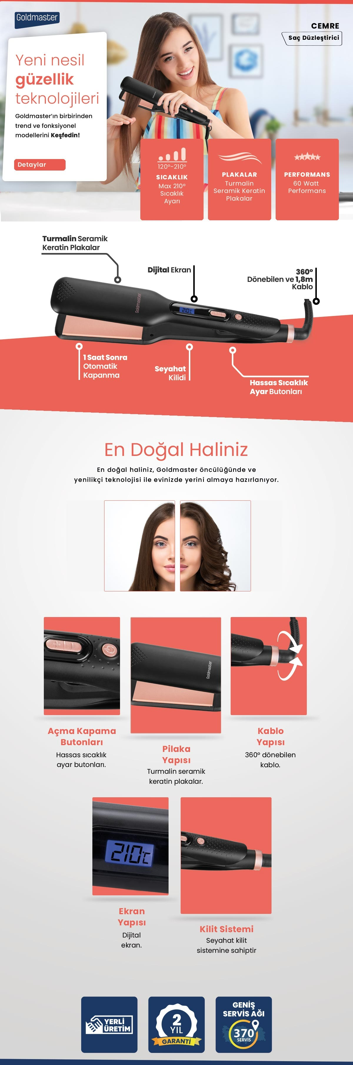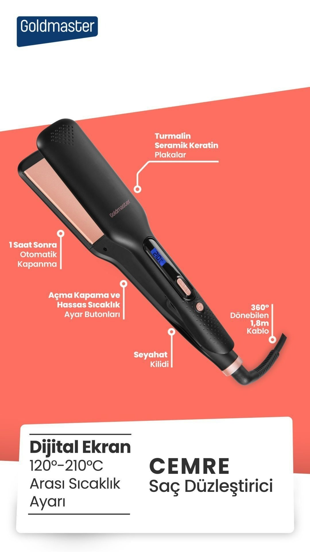 Goldmaster GM-7187 Cemre Geniş Seramik Saç Düzleştirici ile Kusursuz ve Pürüzsüz Saçlar!