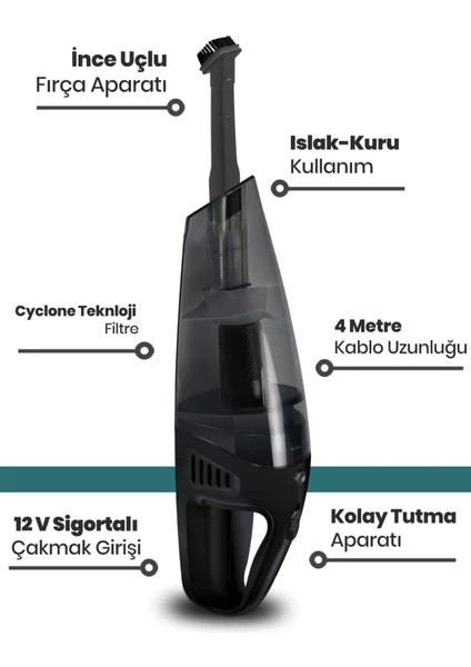 Goldmaster GM-7554 Automax 12V Araç Süpürgesi, araç içindeki kir ve tozları hızla temizlemeniz için ideal bir çözümdür. Islak ve kuru kullanım özelliği, 4 metre uzunluğundaki kablosu ve güçlü motoru ile her türlü zorlu temizlik işini kolayca halleder. Automax Cyclone Teknolojisi ve çevreci yüksek verimli motor sayesinde yüksek emiş gücü sağlar, böylece aracınız her zaman temiz ve düzenli kalır.
