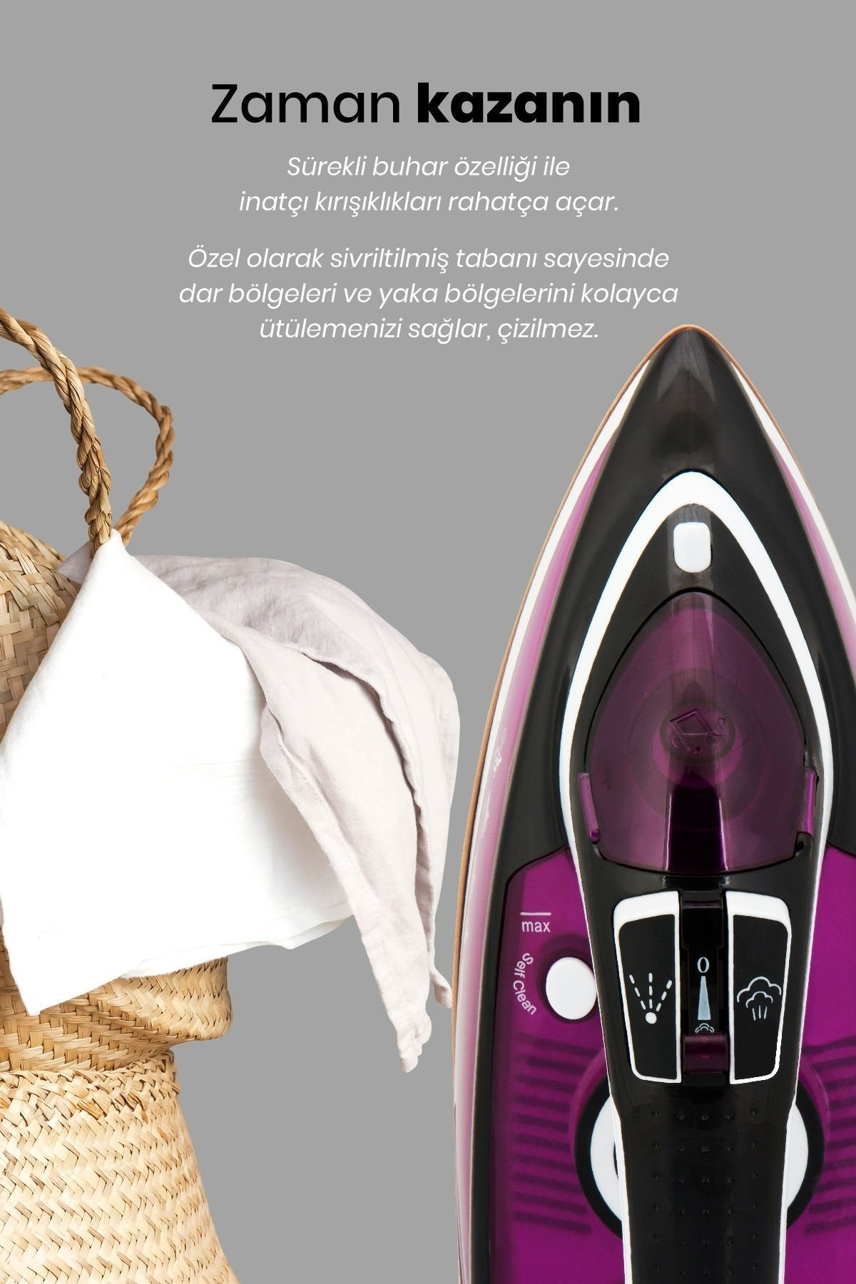 Goldmaster GM-7615 Vals Buharlı Ütü, yüksek performansı, geniş su tankı ve ileri teknolojisi ile ütüleme deneyiminizi en üst seviyeye çıkarır. Zorlu kırışıklıklarla mücadele ederken, kireç önleme ve damlama emniyeti özellikleri ile de her kullanımda üstün bir performans sunar.