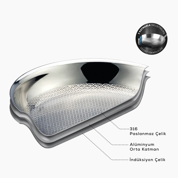 Karaca 3Ply PowerSteel 316+ Çelik İndüksiyon Tabanlı Konik 8 Parça Petekli Çelik Tencere Seti