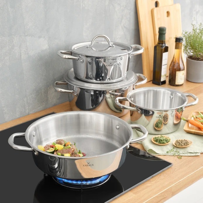Geleneksel tencere setlerinden farklı olarak Karaca PowerSteel Tencere Seti ile hem şık hem de sağlam bir mutfak deneyimi yaşayın!