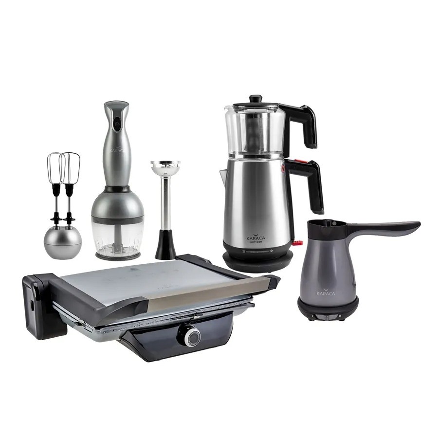 HesabımKaraca 4lü Elektrikli Çeyiz Seti Antrasit 1 Adet Çeyiz Tost Makinesi Anstrasit 1 Adet Elektrikli Cezve Antrasit 1 Adet Blender Set Antrasit 1 Adet Cam Demlikli Çay Makinesi İnox