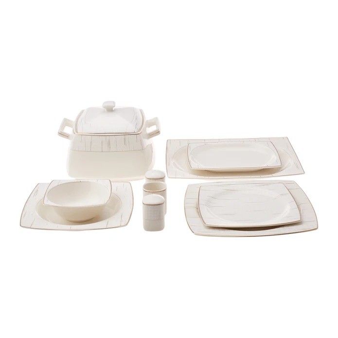 Karaca Batik Fine Cream 60 Parça 12 Kişilik Kare Yemek Takımı, sade şıklığı ile benzersiz bir sofra deneyimi sunar. Işıltısı, desenleri ve rengi ile modern sofralar için vazgeçilmeziniz olur. Üstelik Fine Cream yapısıyla da tercih sebebidir. 60 parçalık geniş set içerisinde 12’şer adet yemek tabağı, servis tabağı, pasta tabağı ve kasenin yanı sıra masa ortasında kullanabileceğiniz küçük ve büyük kayık tabaklar, baharatlıklar, kürdanlık ve çorbalık bulunmaktadır. Böylelikle kalabalık misafirleriniz için eksiksiz sunumlar yapabilir, şık sofra sunumlarınızla beğenileri kazanabilirsiniz.
