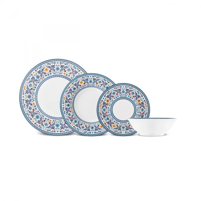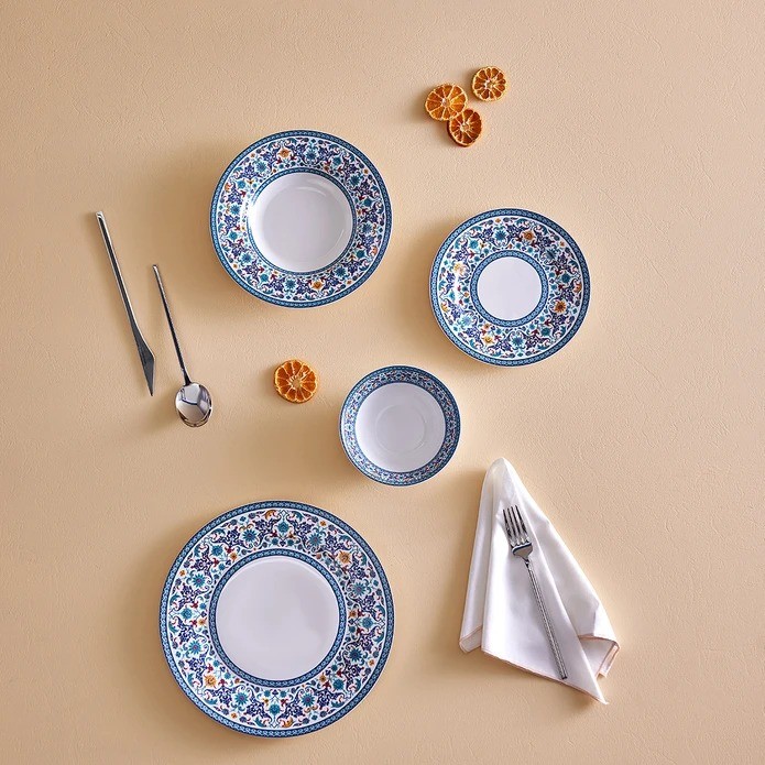 Karaca Beylerbeyi 24 Parça Yemek Takımı, hem günlük kullanım hem de özel davetler için mükemmel bir seçenektir. Şık tasarımı ve kaliteli malzemesi ile sofralarınıza zarif bir dokunuş katacaktır.