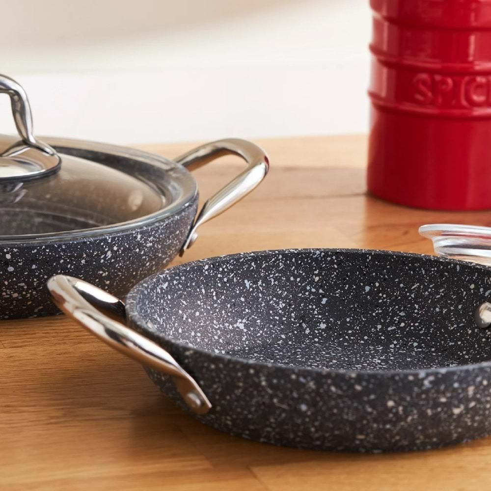 HesabımKaraca Biogranit Navy Stone 6 Parça Sahan Seti, şık navy taş kaplaması ve dayanıklı yapısıyla mutfaklarınıza modern bir dokunuş getirir. Çelik Kardeşler VIP avantajları ve elden taksit seçenekleriyle bu kullanışlı seti rahatça edinebilirsiniz.