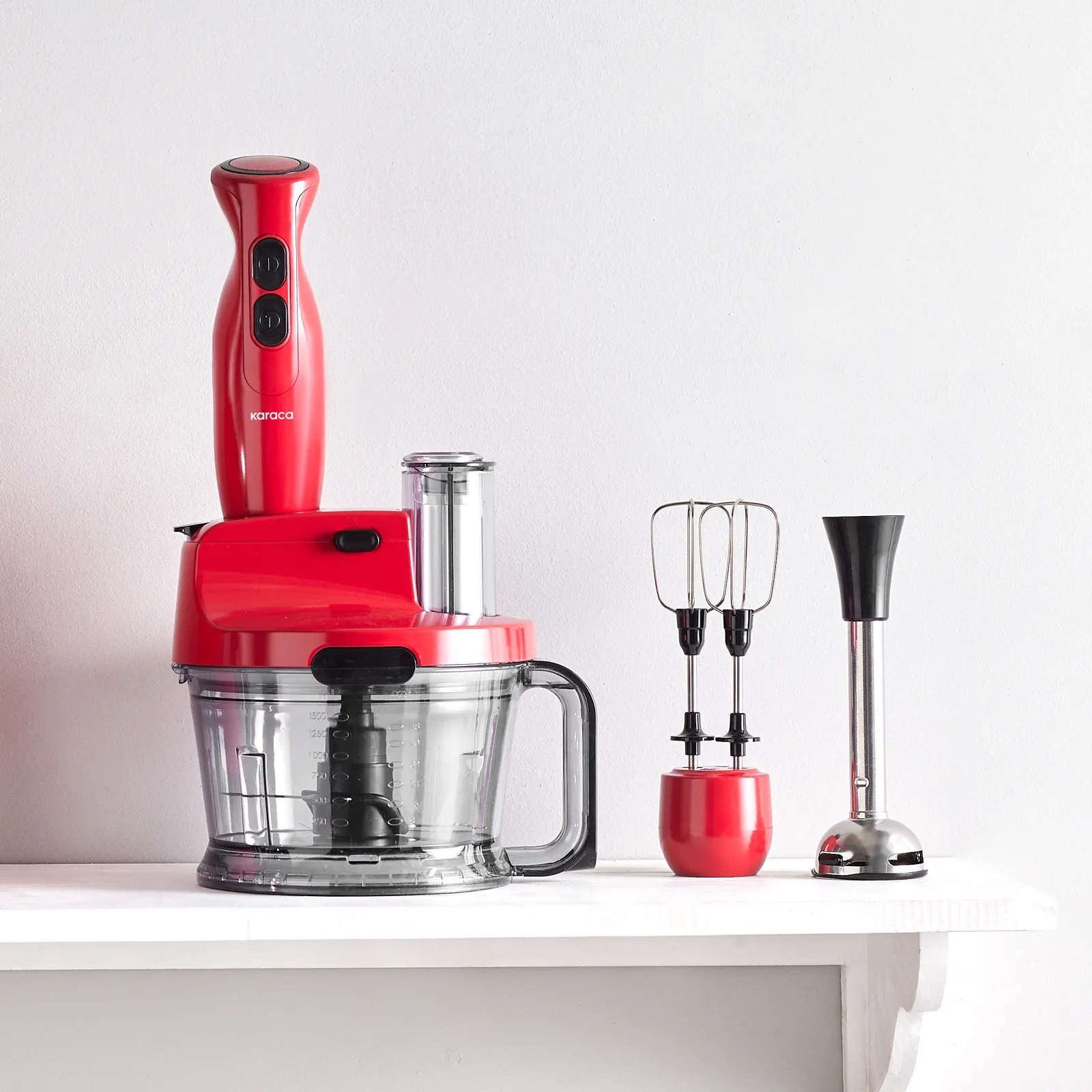 Karaca Mutfak Robotu, turbo fonksiyonu, 1,5 lt geniş haznesi ve keskin bıçakları sayesinde yiyeceklerinizi kolayca parçalarken, ergonomik gövde tasarımıyla da rahat bir kullanım sunar. Çorbaları tencerede karıştırma imkanı sunan çizilmeyi önleyici yüzük aparatı sayesinde mutfakta ilktir. Blender ayağı, ikili mikser ucu, dilimleme, rendeleme için özel tasarlanmış tırtıklı ve düz diski ile fonksiyonel olmasının yanında tüm aparatların paslanmaz çelikten oluşmasıyla sağlıklı ve uzun ömürlüdür. Standar düz bıçaklar ile karşılaştırıldığında daha verimli ve dayanıklı olduğu görülen Karaca Mutfak Robotu aparatlarının kolayca ayrılabilmesi ve temizlenmesiyle de oldukça pratiktir.