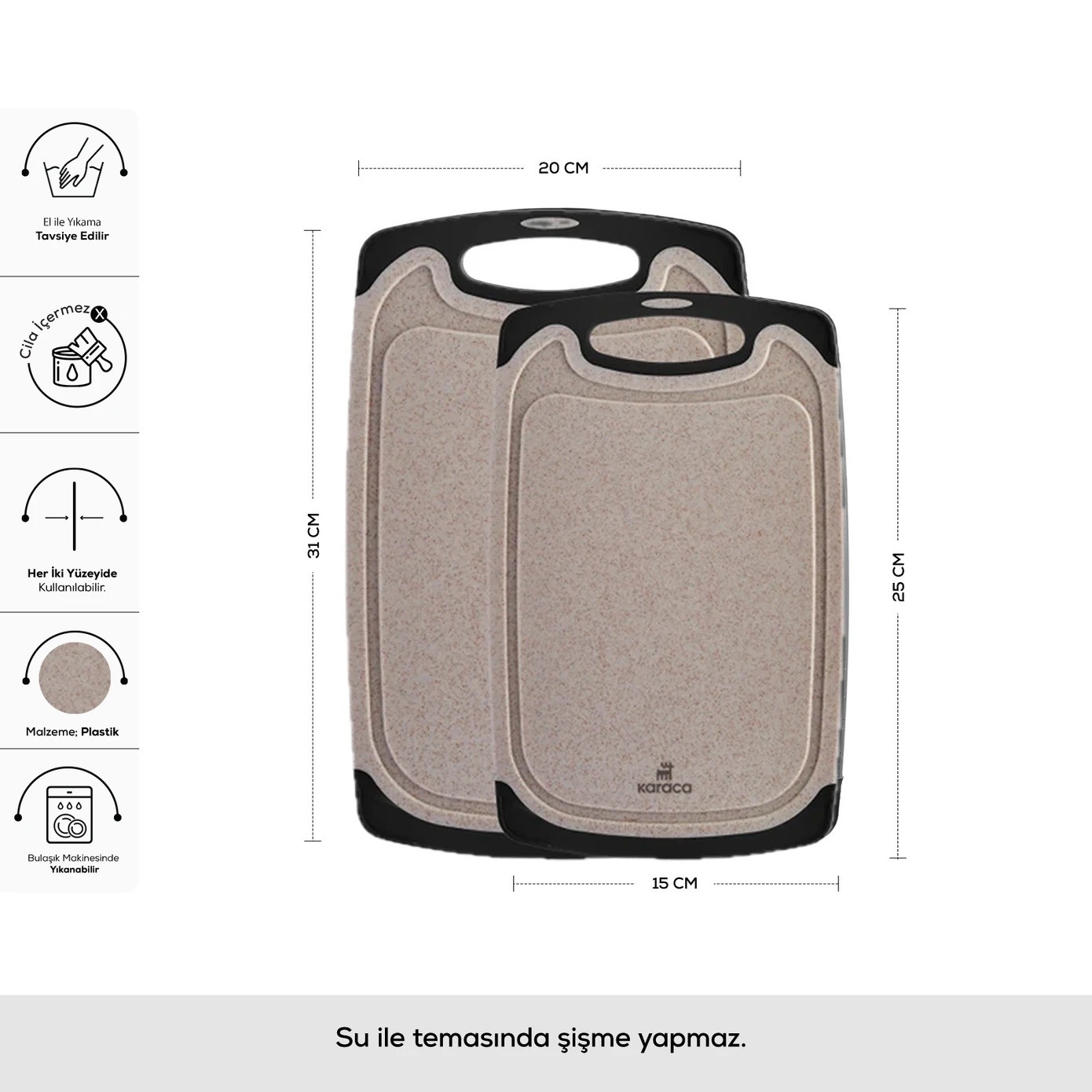 Karaca Daily Granit Desenli Krem 2'li Kesme Tahtası, mutfak işlerinizde size büyük kolaylık sağlar. Her iki boyutuyla da mutfakta ihtiyacınız olan her durumda yanınızda!