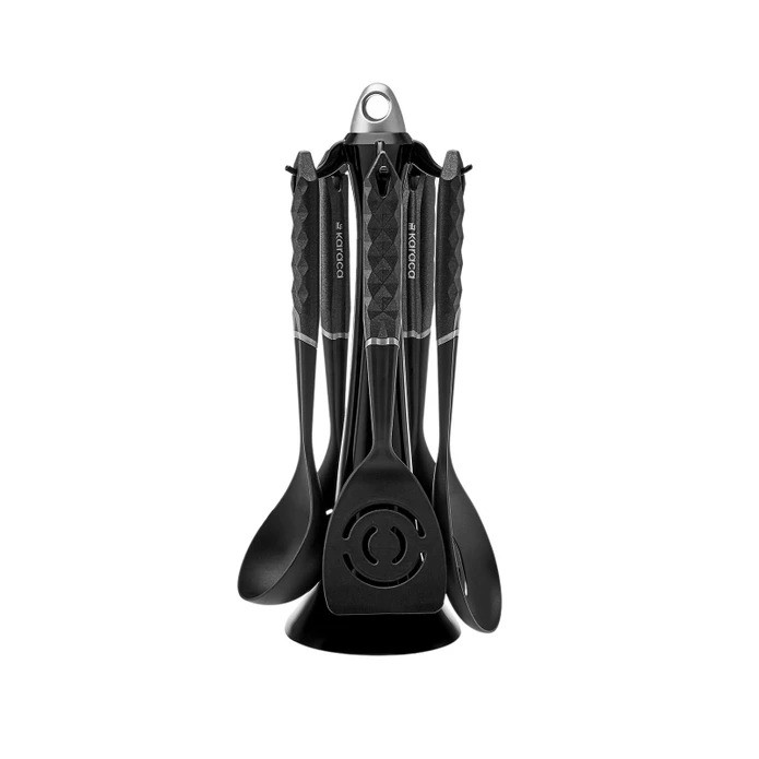Karaca Diamond Gray 6 Parça Standlı Servis Seti , elmas formlu tasarımı ile oldukça şık bir görünüme sahiptir. Mutfağınızda ve sofranızda tarzınızı yansıtacak bu takım, zengin içeriği ile oldukça idealdir. Özenle hazırladığınız yemeklerle süslediğiniz sofranızda Karaca Diamond Gray 6 Parça Standlı Servis Seti’ni tercih ederek ailenize, arkadaşlarınıza ve misafirlerinize servis yaparken şık bir görünüm elde edebilirsiniz. Günlük kullanım için de idealdir. Set içerisinde spatula, kevgir, makarna kaşığı, servis kaşığı, kepçe ve mutfağınızda alandan tasarruf etmenizi sağlayacak set standı bulunmaktadır.