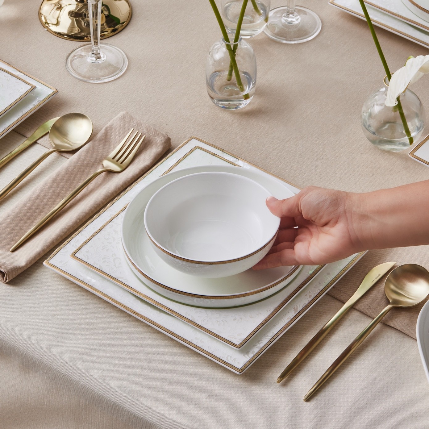 elden taksit imkanı, Sarıçelik VIP, 12 kişilik yemek takımı, Fine Pearl yemek takımı, altın detaylı yemek takımı, kare yemek takımı, Karaca yemek takımı