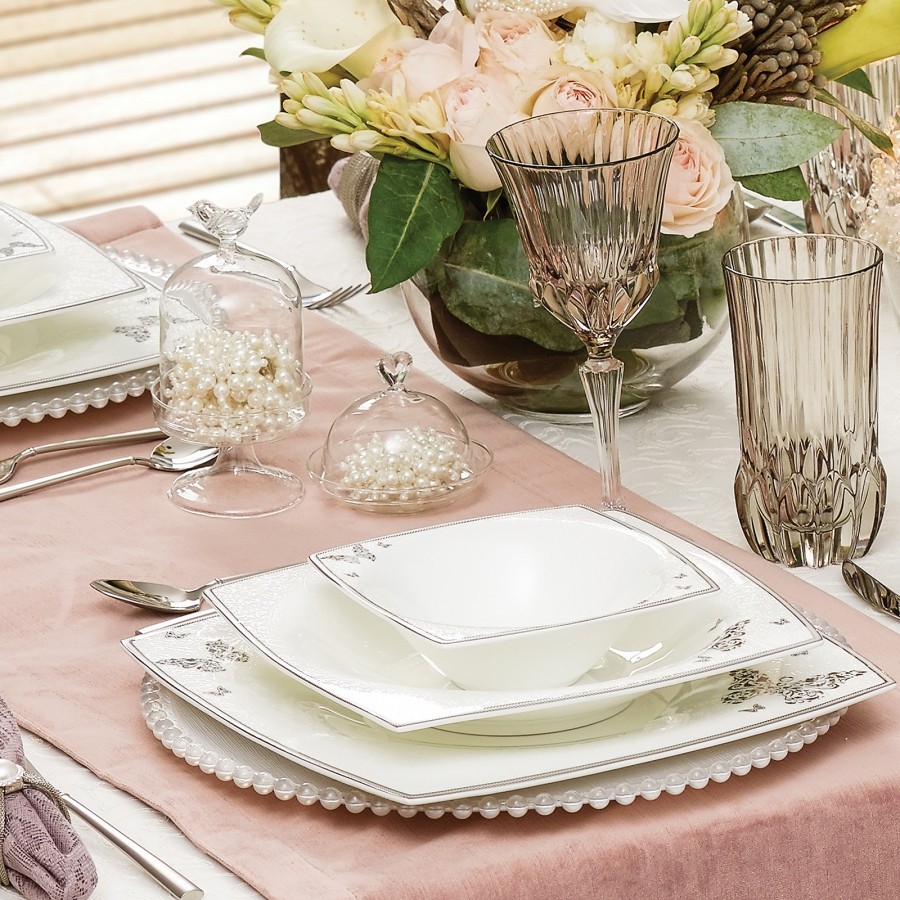 Karaca Fine Pearl Mariposa 62 Parça 12 Kişilik Kare Yemek Takımı ile sofralarınızı şıklıkla donatın. Şimdi sarıçelikvip avantajlarıyla uygun fiyat ve elden taksit seçenekleriyle hemen sahip olabilirsiniz.