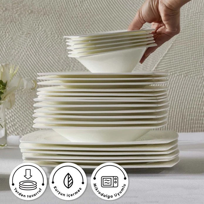 Karaca Fine Pearl Roma 62 Parça Kare Yemek Takımı