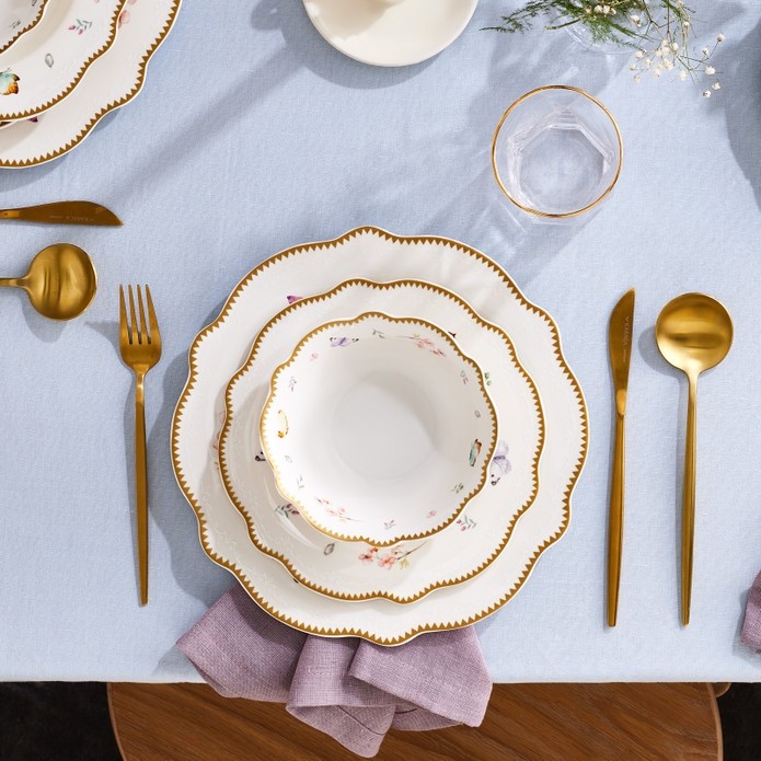 Karaca Forever Bone Fly 24 Parça Yemek Takımı, zarif tasarımı ve dayanıklı yapısıyla sofralarınıza şıklık katıyor. 6 kişilik kullanım için özel olarak hazırlanan bu set, modern tasarımı ve ince detaylarıyla hem günlük hem de özel davet sofralarınız için ideal bir seçimdir. Yüksek kaliteli bone materyalden üretilmiş olması sayesinde uzun ömürlü ve sağlıklı bir kullanım sunar.