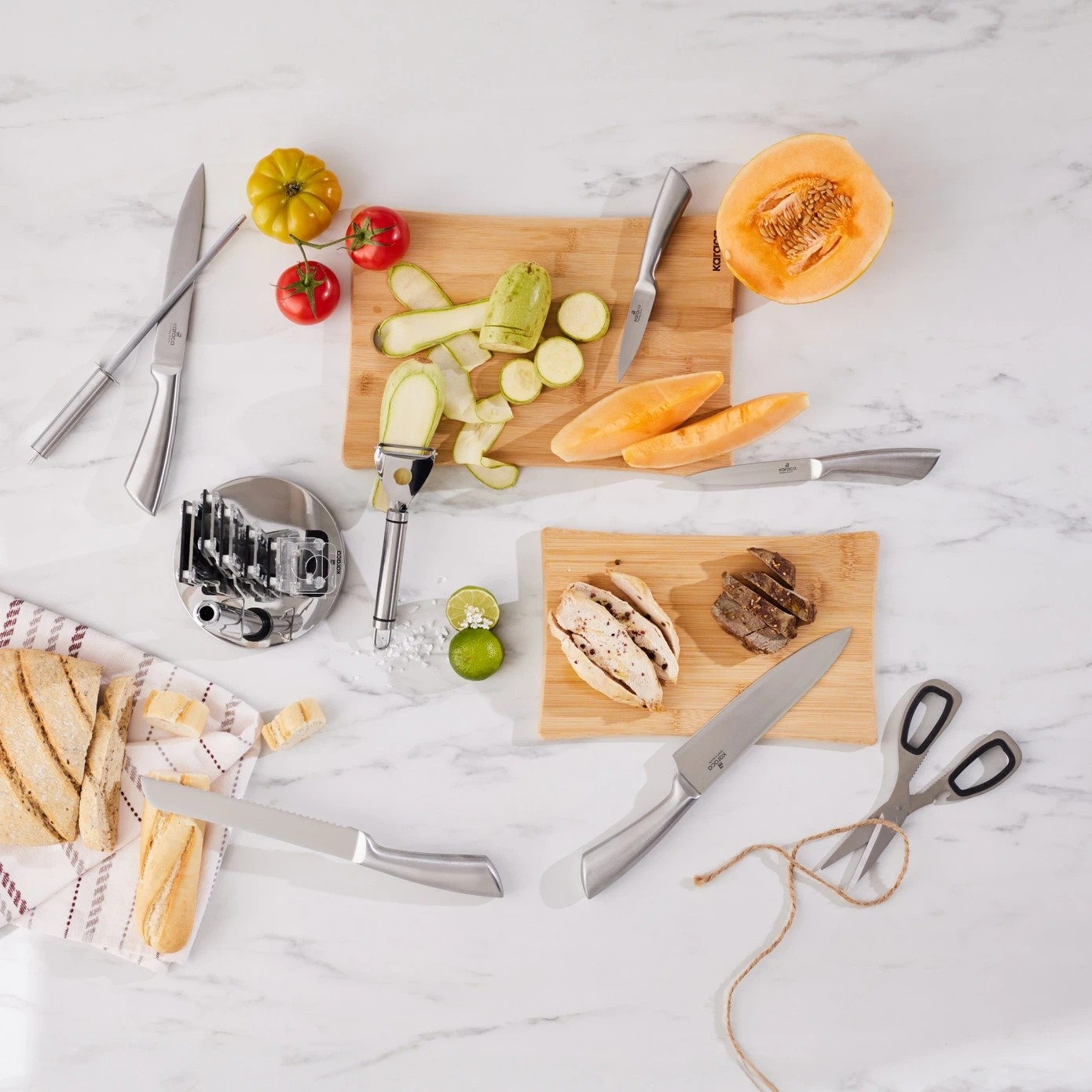 Karaca Meister Palm 9 Parça Çelik Bıçak Seti, mutfakta profesyonel bir deneyim yaşamak isteyenler için ideal bir seçimdir. Keskinliği, dayanıklılığı ve fonksiyonelliği ile her aşçının mutfağında olması gereken bir settir!
