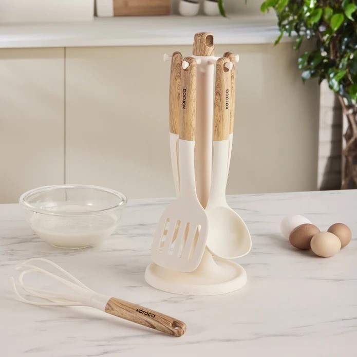 Karaca Melly Servis Seti, fonksiyonel tasarımı ve şık standı ile mutfaklarınıza pratiklik ve zarafet katar. Hem estetik hem de kullanışlı olan bu set, yemek hazırlığınızı ve sunumunuzu daha keyifli hale getirecek.