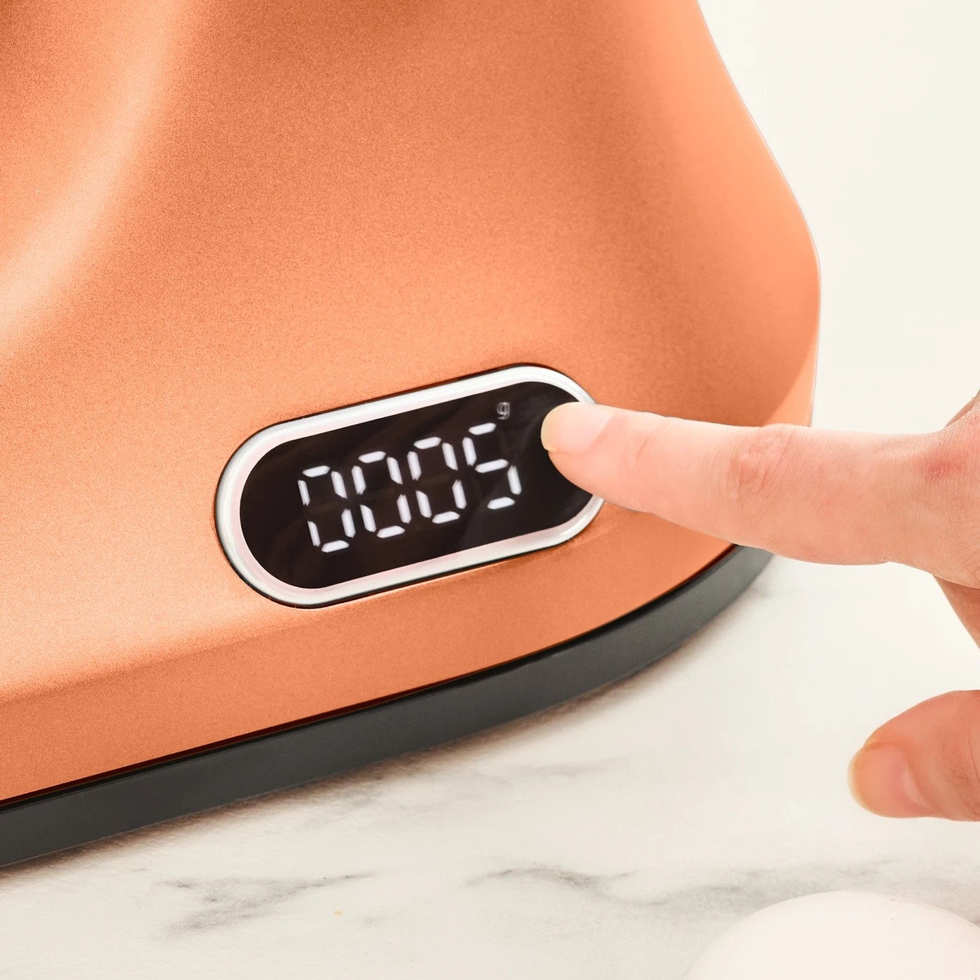 Karaca Pro Artisan Zaman Ayarlı Tartılı Mutfak Şefi, mutfakta ihtiyaç duyduğunuz tüm özellikleri bir arada sunar. Estetik ve işlevselliği Copper Glow renk seçeneğiyle buluşturan bu mutfak şefi, hem profesyonel hem de ev kullanımı için idealdir.