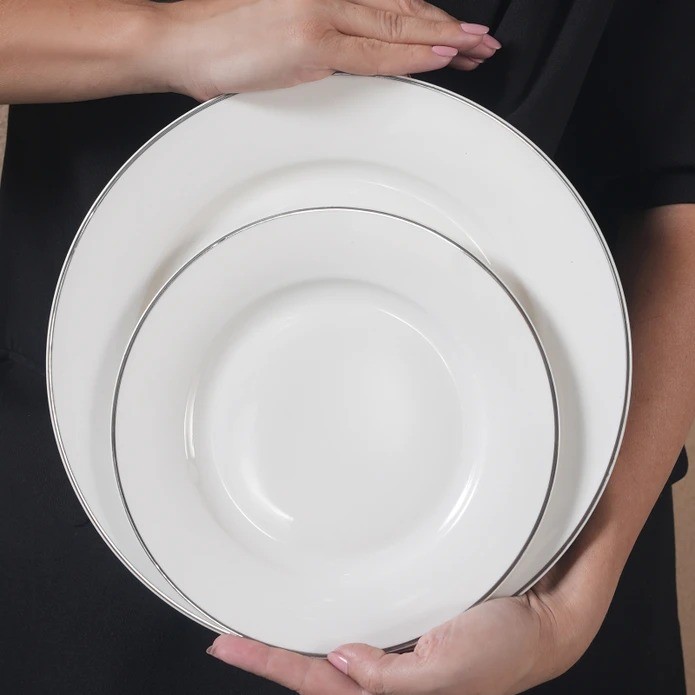 24 özel parçadan oluşan geniş set içerisinde 27cm’lik 6’şar adet servis tabağı, 20 cm’lik çukur tabak, 20 cm’lik pasta tabağı, 14 cm’lik kâse bulunur. Anneler Günü’ne özel olarak üretilen Karaca Rebeca Platin 24 parça 6 kişilik porselen yemek takımını kullanarak hem özel günlerde hem de günlük sofralarınızda davet şıklığı elde edebilirsiniz.