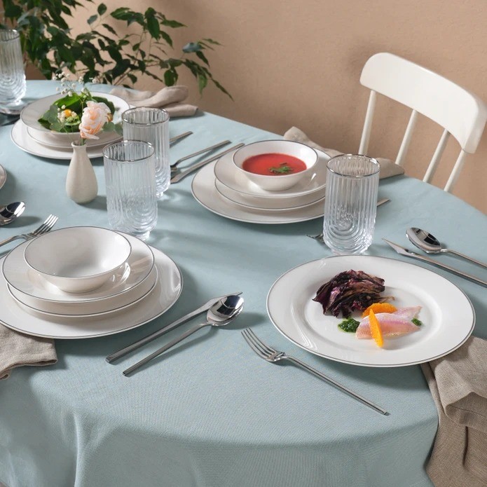 Karaca Rebeca Porselen 24 Parça 6 Kişilik Yemek Takımı Platin