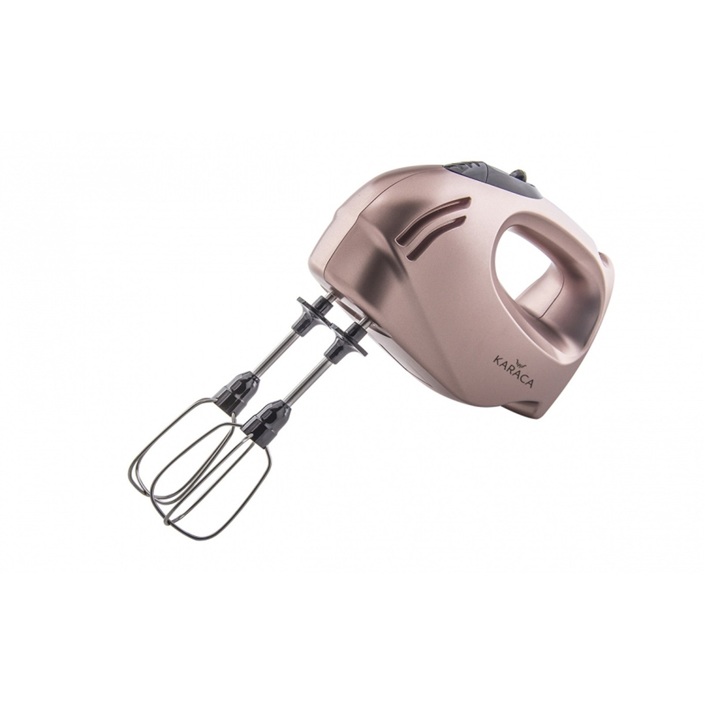 HesabımKaraca Rosegold Mikser, mutfaktaki işlerinizde size yardımcı olacak güçlü ve şık bir yardımcıdır. 425 W gücüyle mükemmel performans sunan bu mikser, çırpma, karıştırma ve yoğurma işlevleriyle her türlü tarife uygundur. Paslanmaz çelik mikser uçları ve bulaşık makinesinde yıkanabilen aksesuarları sayesinde kullanım kolaylığı sağlar. Hem estetik hem de işlevsel tasarımıyla mutfağınıza şıklık katacak.