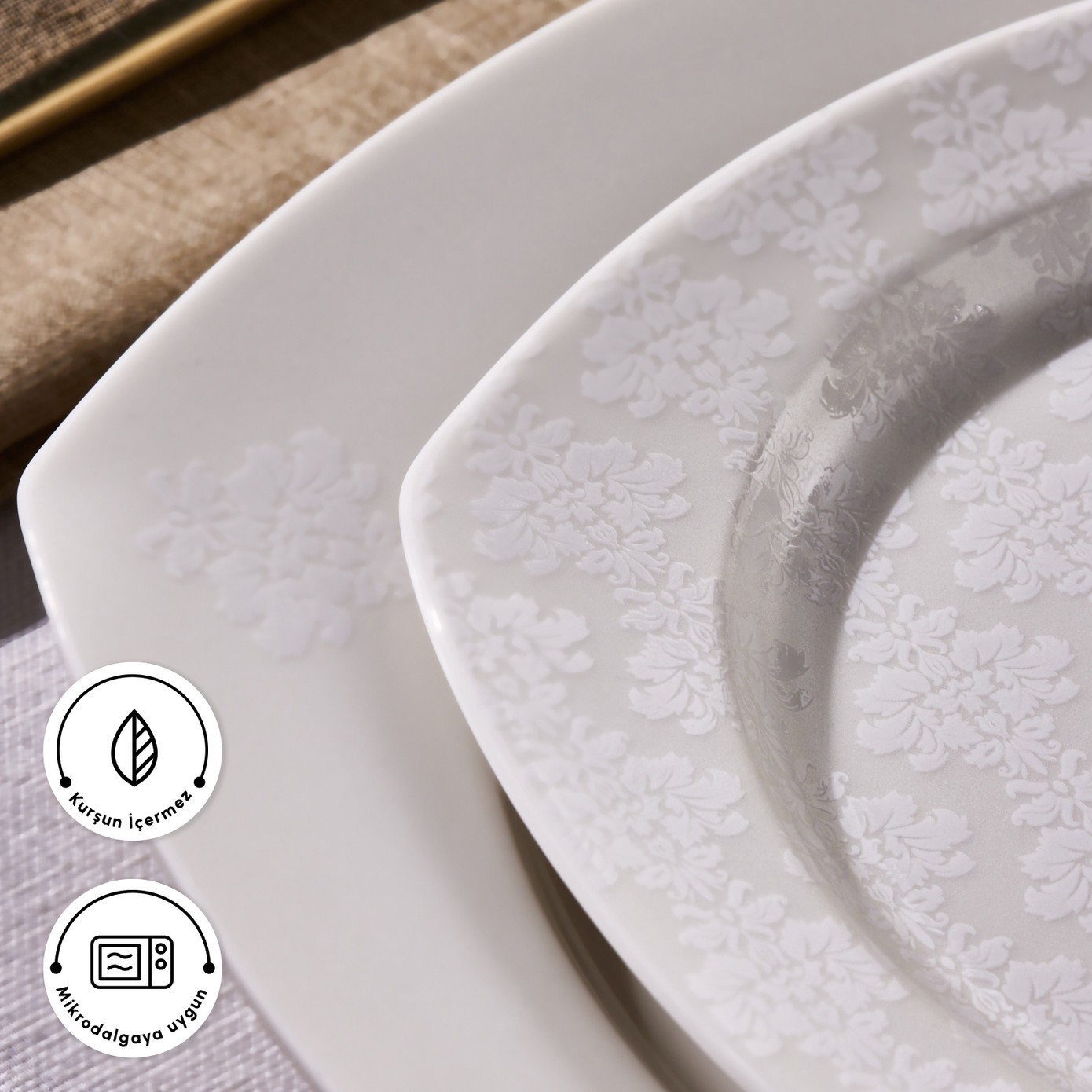 Zarif tasarımı ve üstün kaliteli porseleniyle öne çıkan Karaca Kare Kemik Deren 60 Parça Yemek Takımı , misafirleriniz ve sevdikleriniz için şık sofralar kurmanızı sağlar. Modern yarım kare formül ve estetik desenleriyle sofralarınıza lüks bir hava katar. Günlük donanım ve özel davetlere uygun bu yemek takımı, dayanıklı yapısı ve göz alıcı tasarımıyla fark yaratıyor.