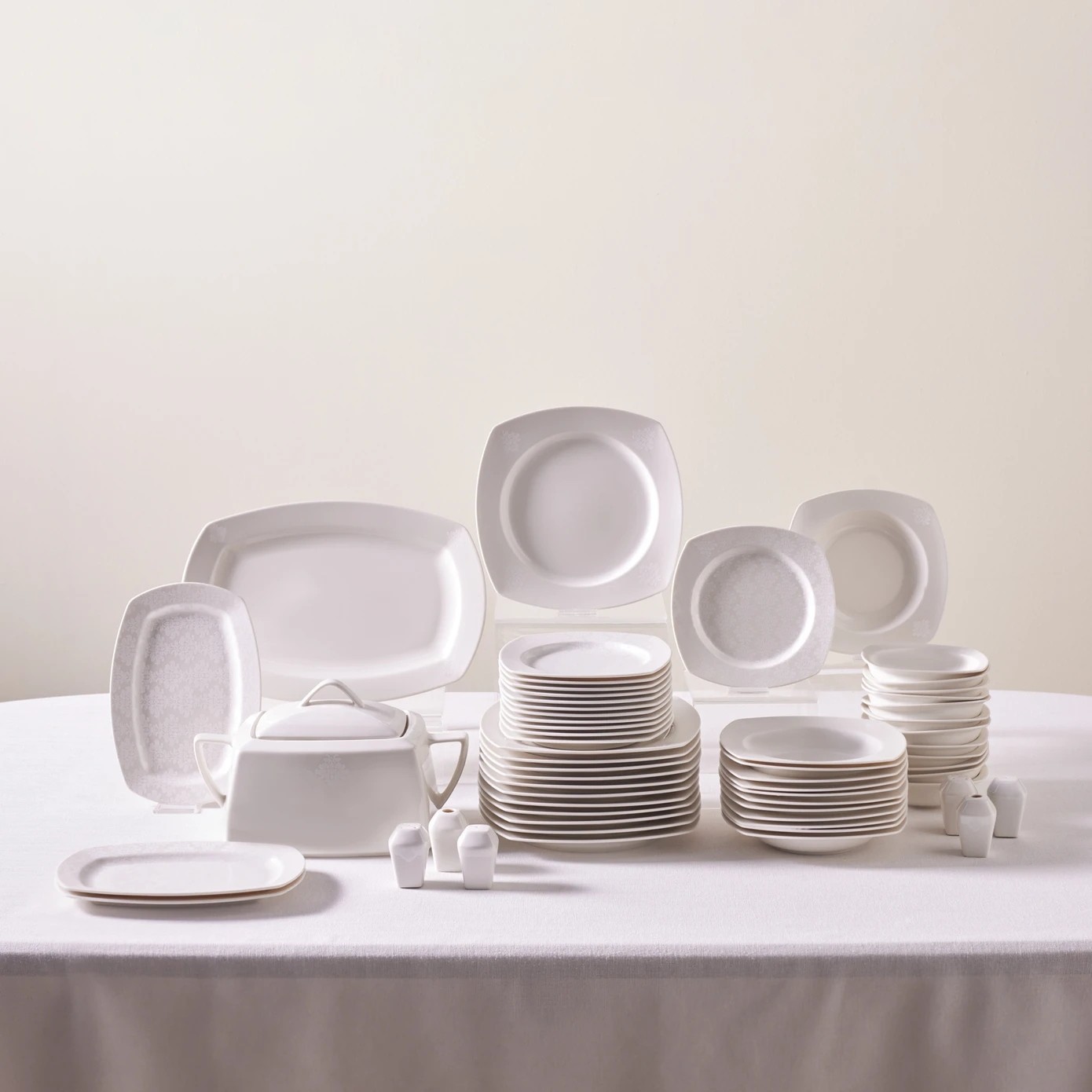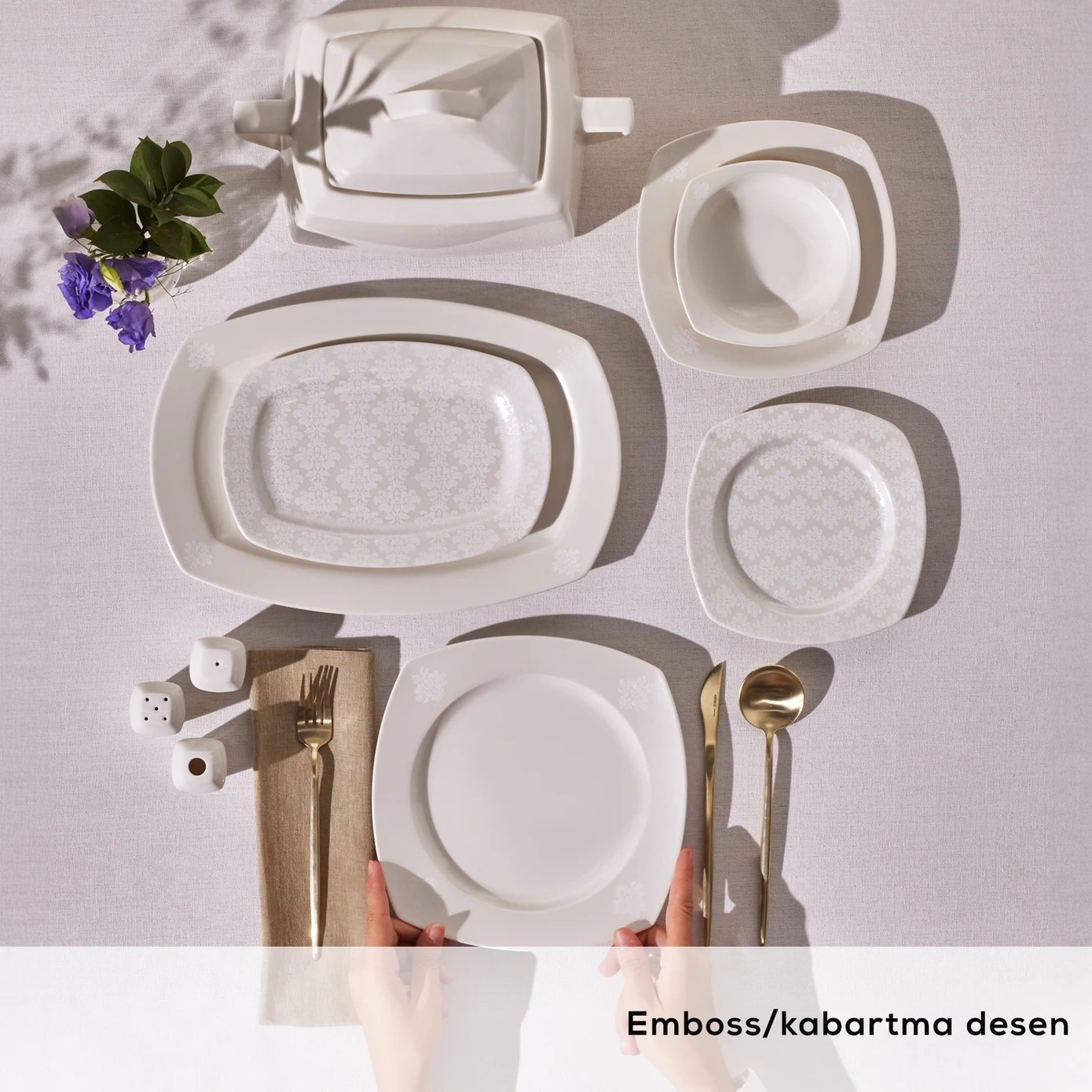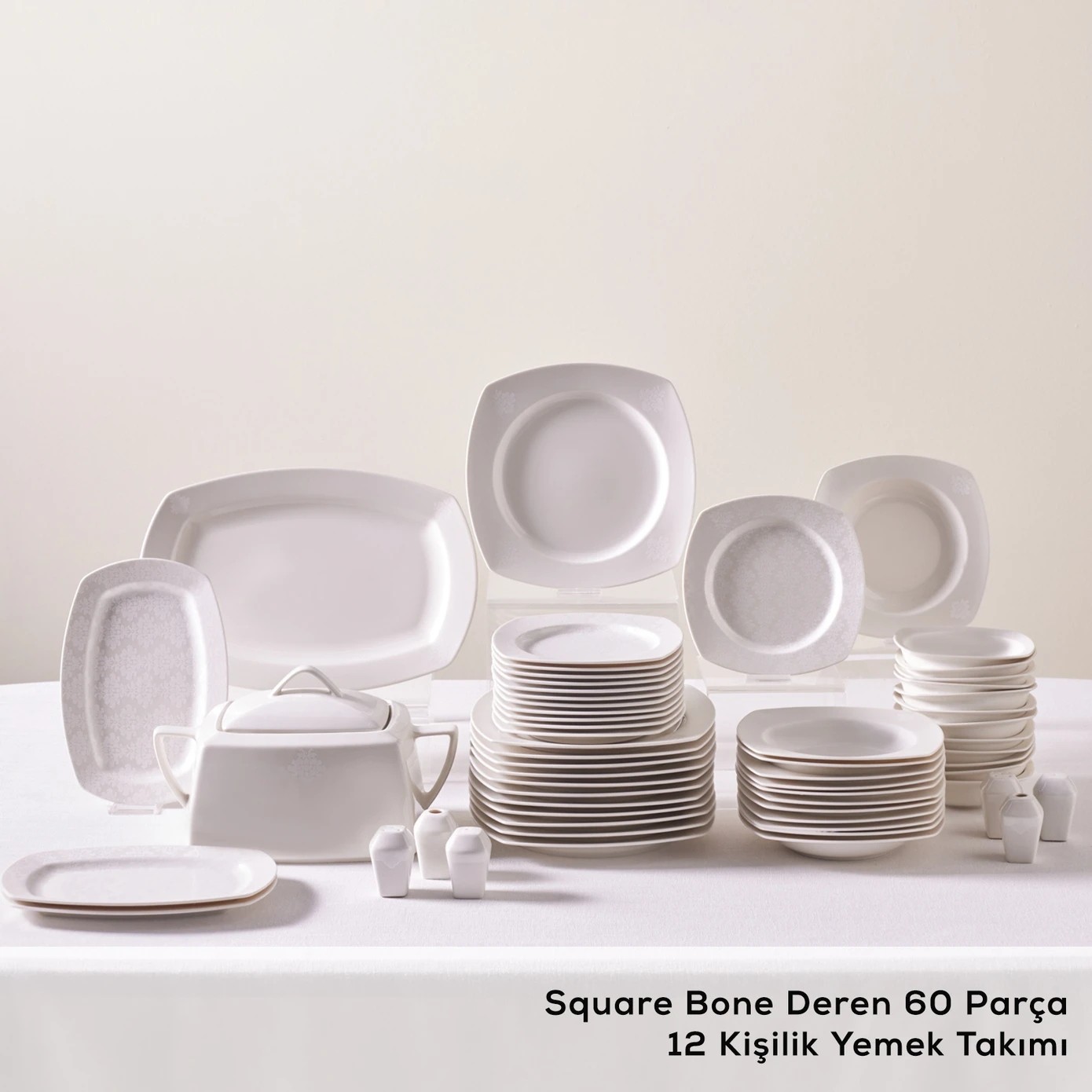 Sofralarınıza zarafet ve modern bir dokunuş katmak için Karaca Kare Kemik Deren 60 Parça Yemek Takımı , Çelik Kardeşler VIP farkıyla elden taksit imkanıyla sizlerle!